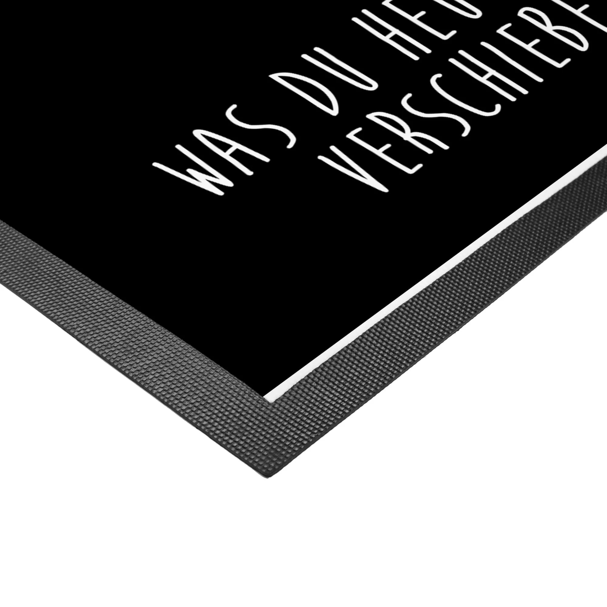 Der Spruch 'Was du heute kannst besorgen, das verschiebe ruhig auf morgen!' lädt zum Entspannen ein und erinnert uns daran, dass wir das Leben auch mit einem Augenzwinkern betrachten können. Sie misst 60 x 90 cm und hat eine Vorderseite aus robustem Polyesterfilz und eine rutschfeste Gummirückseite, die für Stabilität sorgt.
