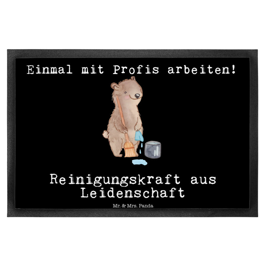 Die Fußmatte "Reinigungskraft aus Leidenschaft" von Mr. & Mrs. Panda ist das perfekte Geschenk für alle, die im Reinigungsberuf tätig sind. Mit einem fröhlichen und liebevoll gestalteten Motiv, das eine Reinigungskraft zeigt, die mit Leidenschaft arbeitet, bringt diese Fußmatte nicht nur Farbe, sondern auch Freude in jeden Eingangsbereich.