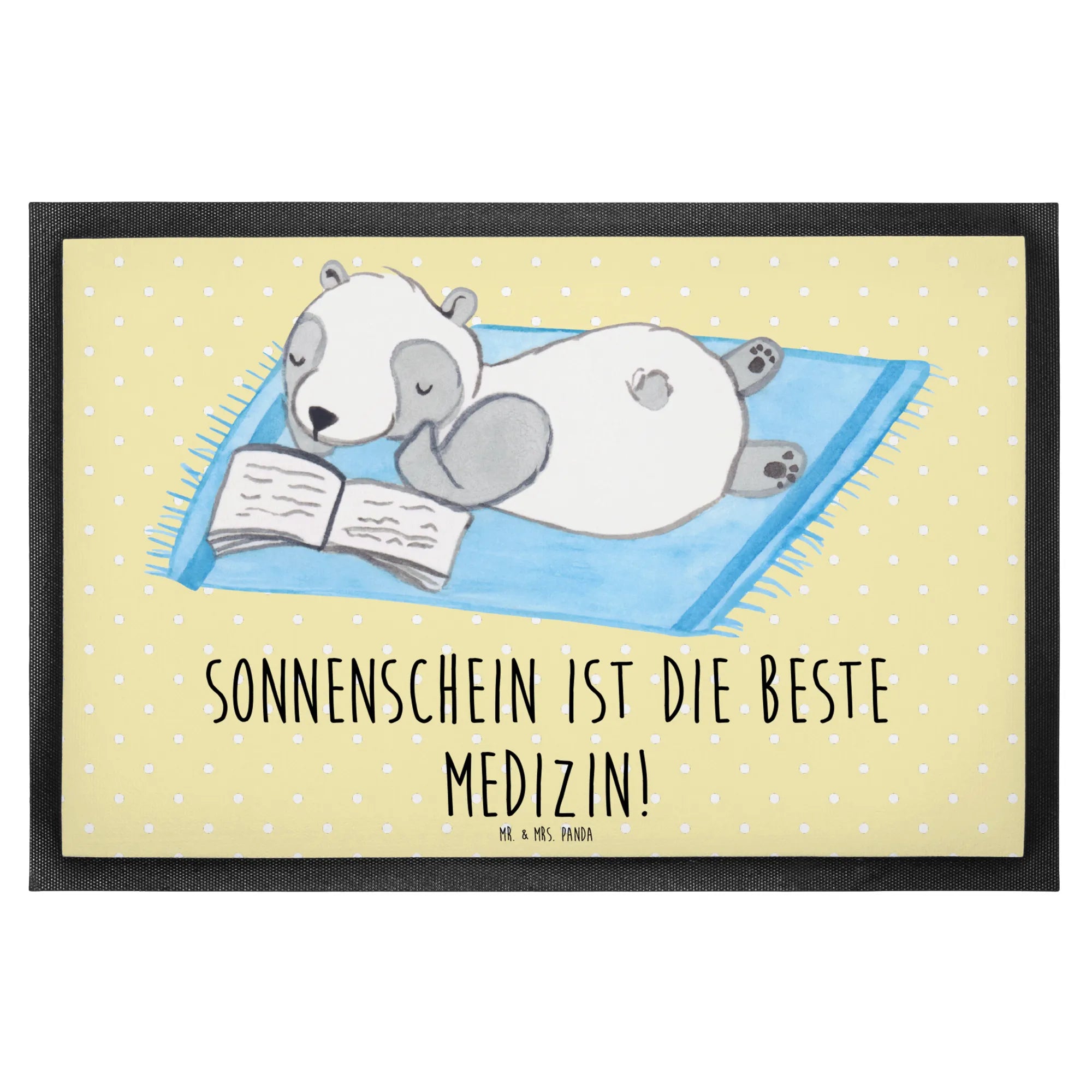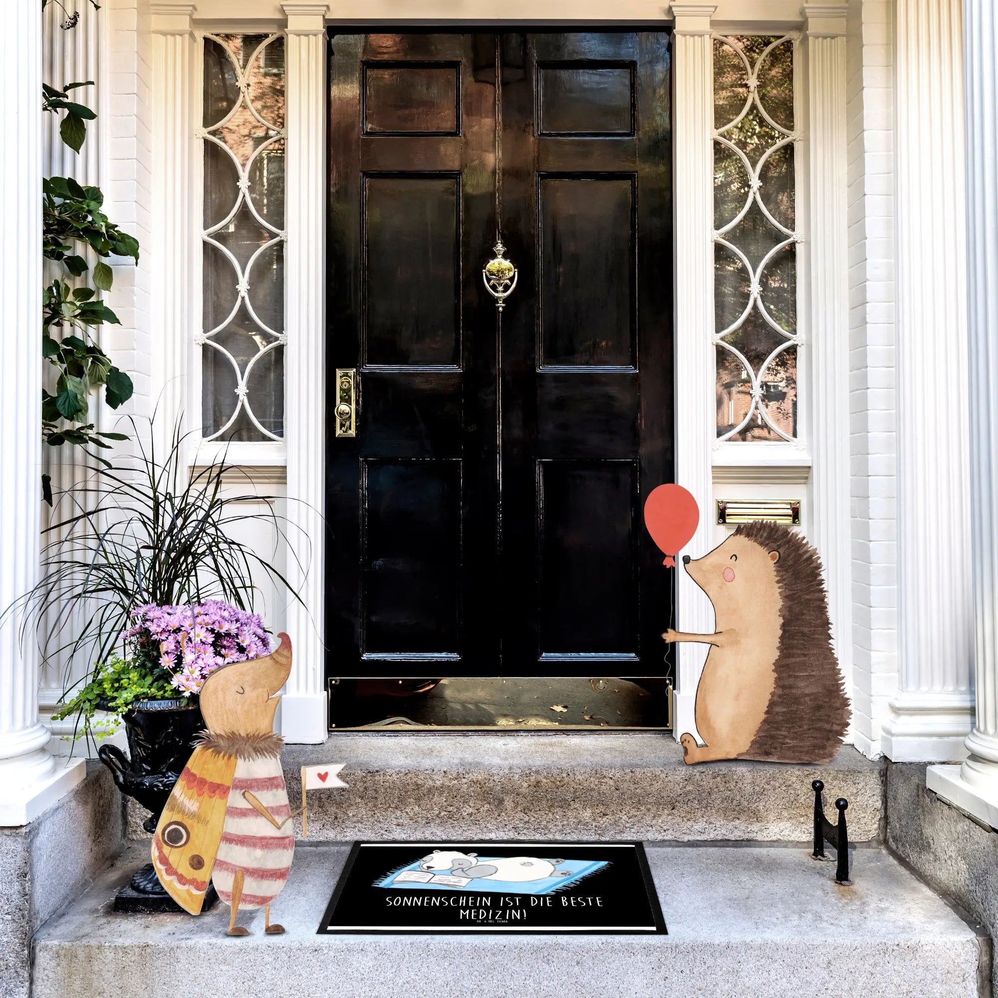 Eine wunderschöne und hochfunktionale Fußmatte von Mr. & Mrs. Panda, ideal für alle, die den Sommer lieben! Diese Schmutzfangmatte mit dem motivierenden Spruch "Sonnenschein ist die beste Medizin!" bringt frischen Wind und Freude in jeden Eingangsbereich.