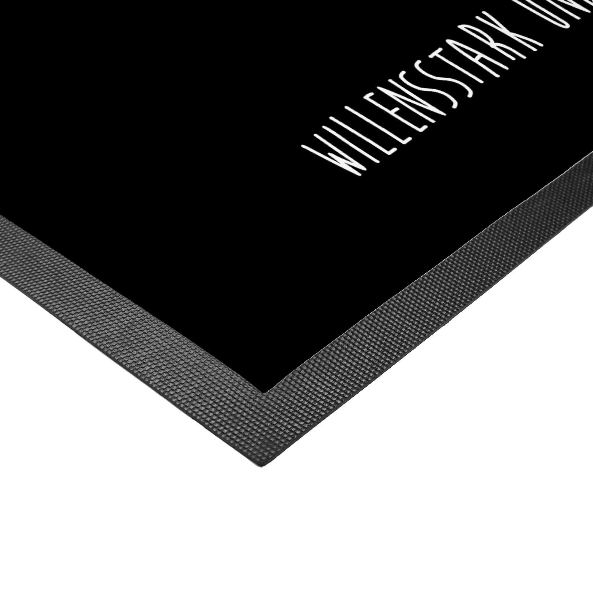 Mit einem robusten Polyesterfilz auf der Vorderseite und einer gummierten Rückseite sorgt sie für optimalen Halt und schützt jeden Boden vor Schmutz. Die eingekreideten Sprüche und die farbenfrohen Designs machen es zu einem tollen Gesprächsthema. Der Steinbock ist bekannt für seine Willensstärke und Zuverlässigkeit – Eigenschaften, die wir uns alle wünschen. Der Slogan 'Willensstark und zuverlässig wie ein Steinbock' bringt genau diese Qualität auf den Punkt und sorgt dafür, dass jeder Besuch bei dir einen bleibenden Eindruck hinterlässt.