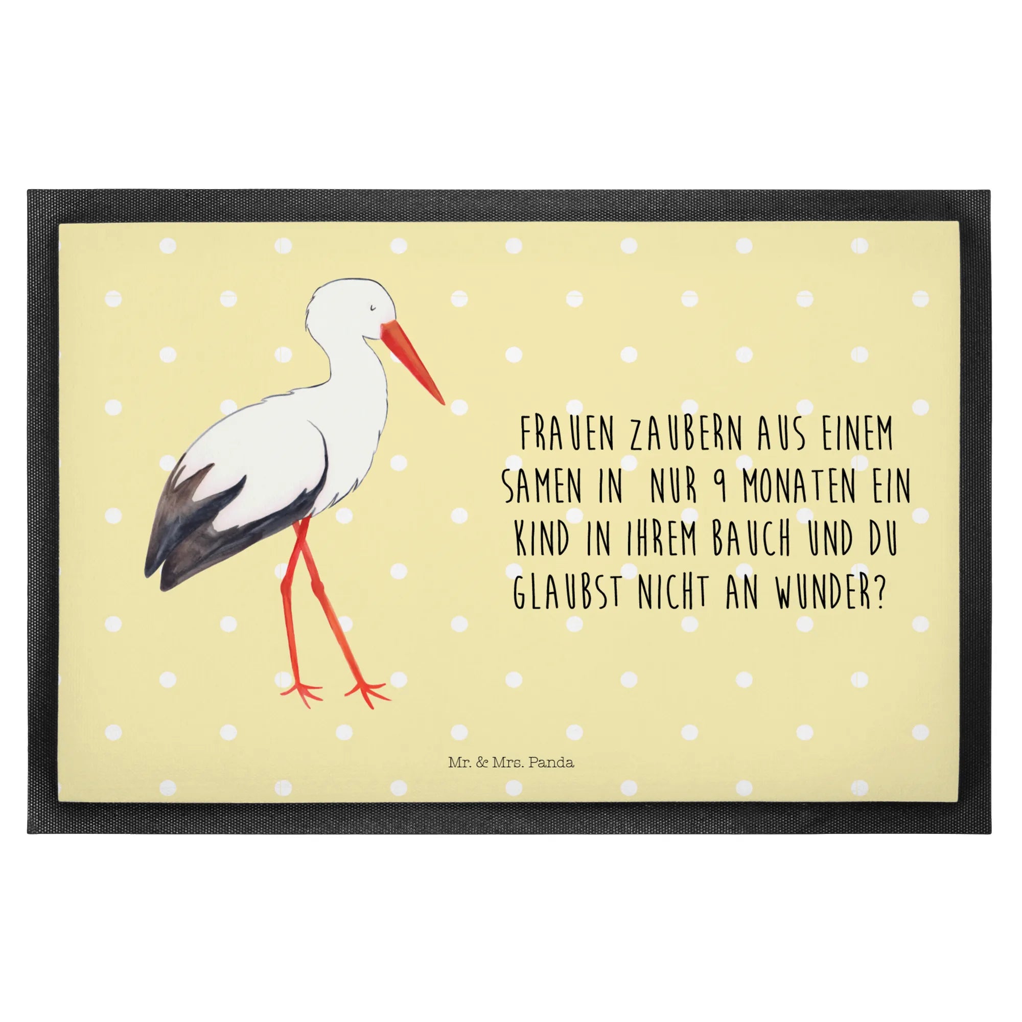 Fußmatte Storch - 60 x 90 cm - mit Spruch - Gelb Pastell