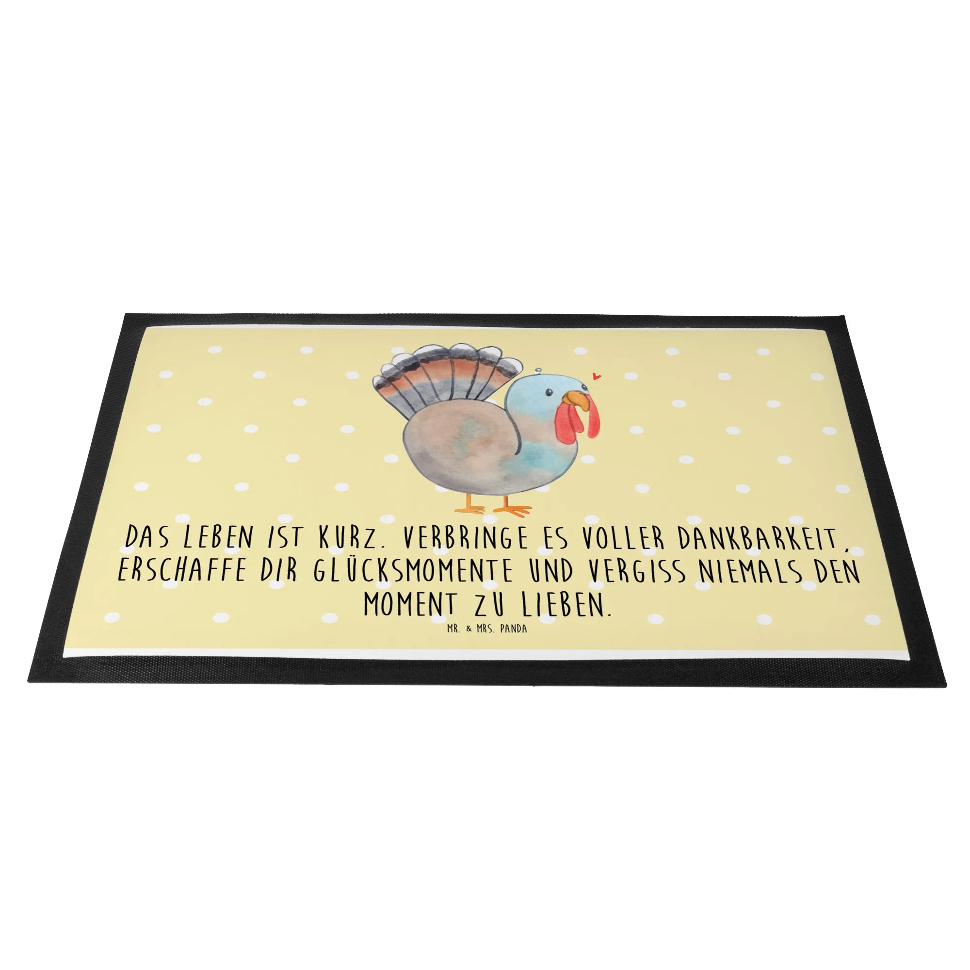 Die Fußmatte mit dem niedlichen Thanksgiving Truthahn von Mr. & Mrs. Panda ist das perfekte Geschenk, um Wärme und Freude in Dein Zuhause zu bringen. Dieser tolle Fußabstreifer ist nicht nur ein praktischer Schmutzfänger, sondern auch ein herzlicher Willkommensgruß, den Deine Gäste lieben werden.