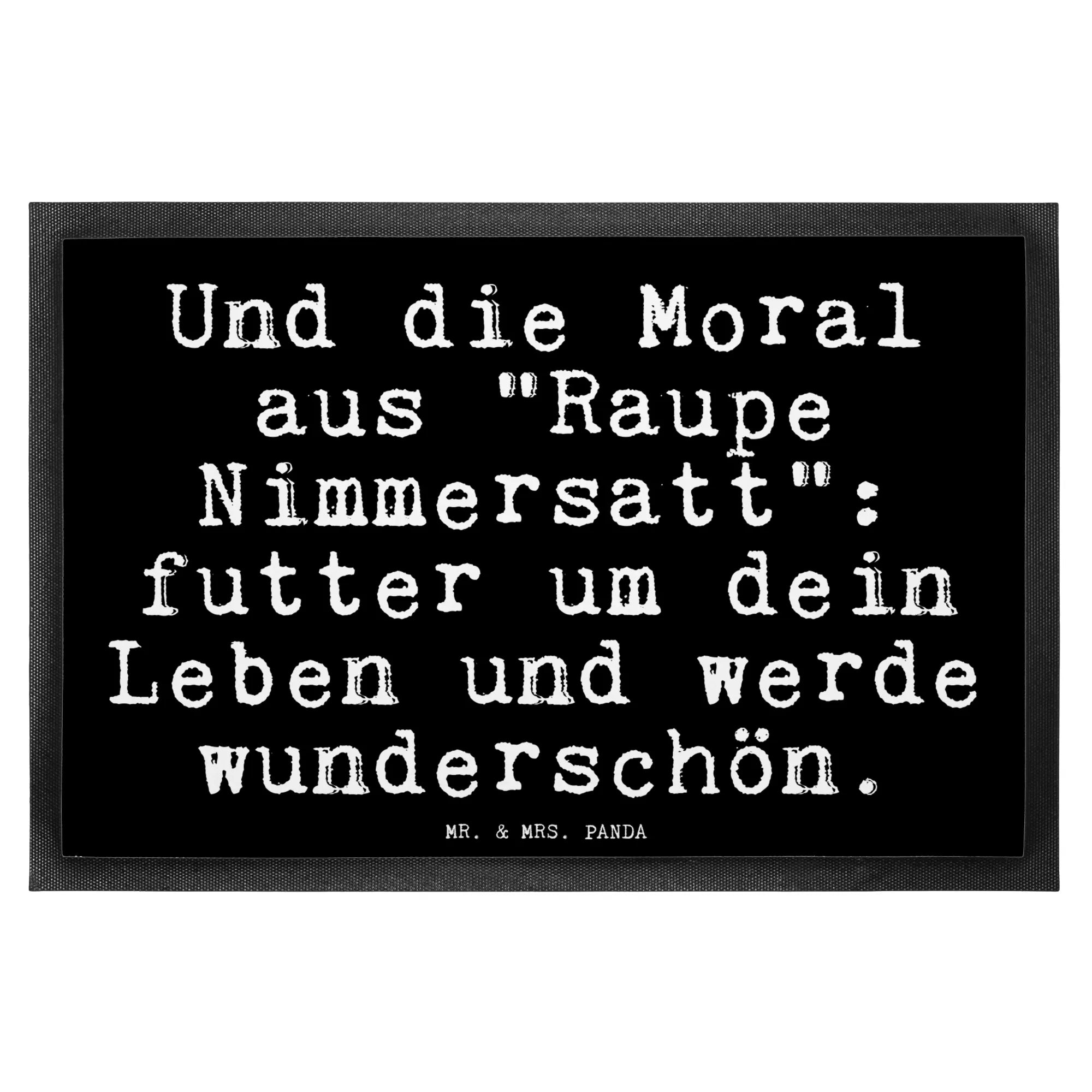 Die Fußmatte "Und die Moral aus 'Raupe Nimmersatt': futter um dein Leben und werde wunderschön." von Mr. & Mrs. Panda ist nicht nur ein praktischer Schmutzfänger, sondern auch eine liebevolle Einladung, das Leben schön zu gestalten. Mit ihren kompakten Maßen von 40 x 60 cm und der Verwendung von robustem Polyesterfilz auf der Vorderseite ist diese Fußmatte perfekt für den Innen- und Außenbereich geeignet.