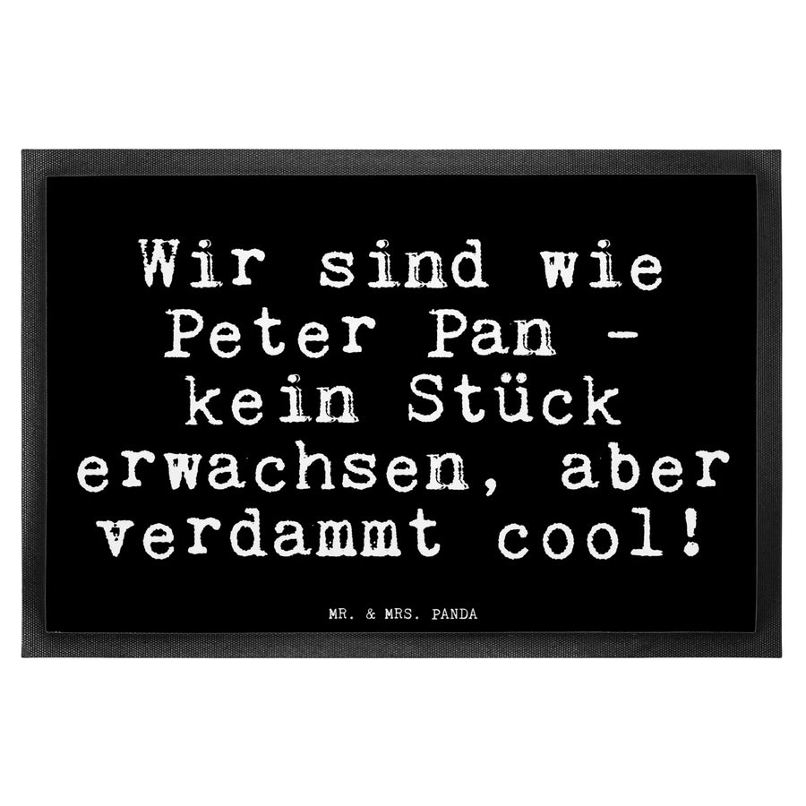 Entdecke die perfekte Fußmatte von Mr. & Mrs. Panda mit dem Spruch 'Wir sind wie Peter Pan - kein Stück erwachsen, aber verdammt cool!'. Diese außergewöhnliche Fußmatte ist nicht nur ein echter Hingucker, sondern auch das perfekte Geschenk für Freunde und Familie, die nie älter werden wollen. Egal, ob zur Einweihung einer neuen Wohnung, zum Geburtstag oder einfach nur als liebevolle Überraschung – dieser Fußabstreiter bringt nicht nur Freude, sondern auch eine Portion Lebensfreude in jeden Eingangsbereich!