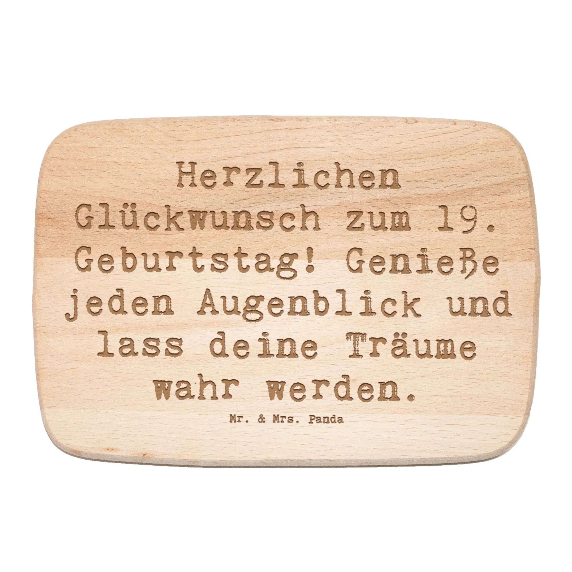 Das Frühstücksbrett von Mr. & Mrs. Panda zum 19. Geburtstag ist das perfekte Geschenk für jeden, der diesen besonderen Tag gebührend feiern möchte! Mit dem liebevollen Spruch "Herzlichen Glückwunsch zum 19. Geburtstag! Genieße jeden Augenblick und lass deine Träume wahr werden." wird dieses Frühstücksbrett zu einem echten Hingucker in jeder Küche. Es besteht aus robustem Birkenholz, welches nicht nur besonders langlebig, sondern auch umweltfreundlich ist.