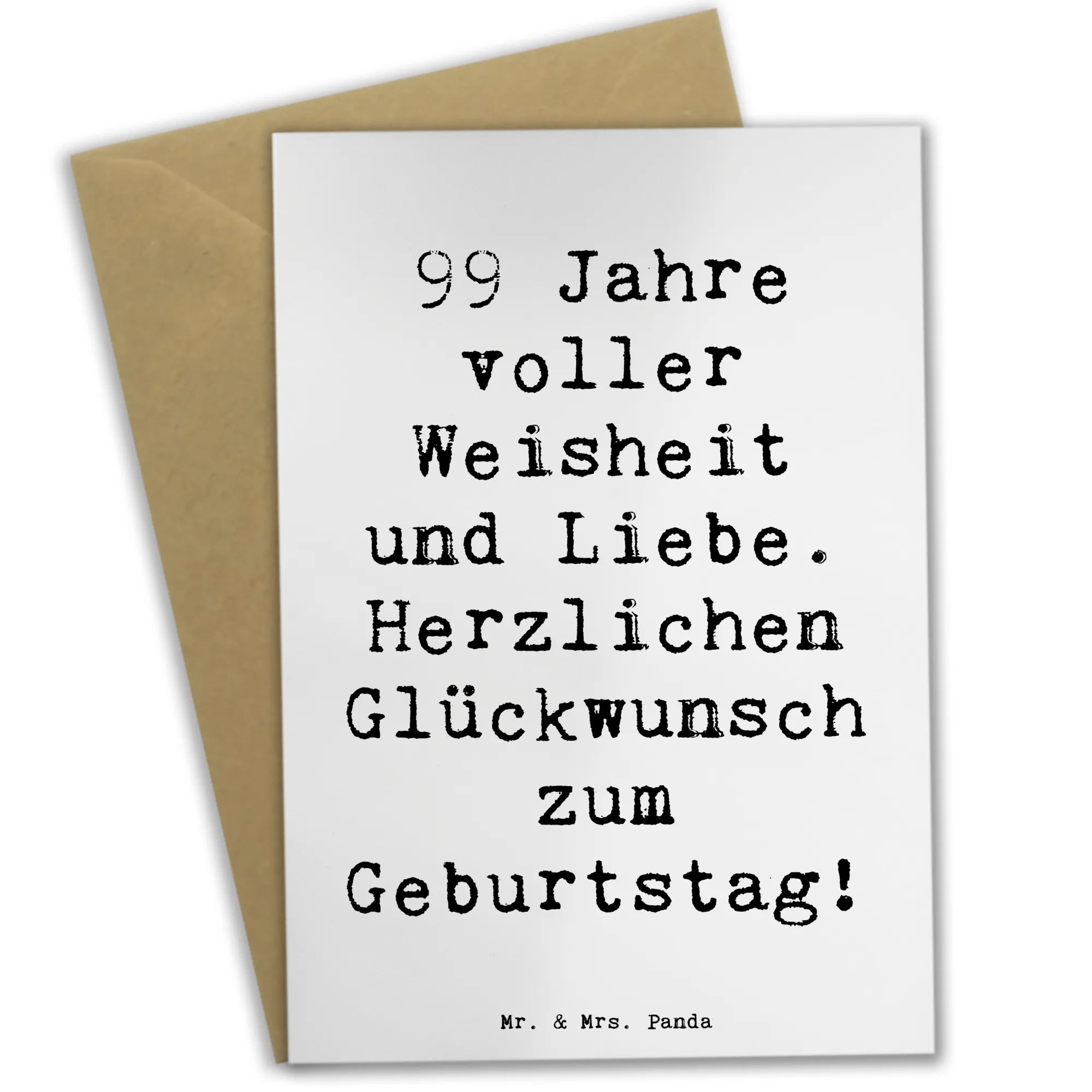 Wenn Du auf der Suche nach einem besonderen Geburtstagsgeschenk bist, dann ist diese Grußkarte das perfekte Accessoire. Es ist mehr als nur eine Karte; es ist ein Stück Erinnerung, das den Tag des Geburtstagskindes noch unvergesslicher macht. Die besondere Botschaft und das liebevolle Design heben sich von anderen Karten ab und machen sie zu einem wertvollen Geschenk für alle, die 99 Jahre voller Weisheit und Liebe gefeiert haben. Lass die Freude und Dankbarkeit mit dieser einzigartigen Karte zu Deinem besonderen Anlass erstrahlen! Mr. & Mrs. Panda helfen Dir, die richtigen Worte zu finden, um Deine Glückwünsche auf eine besondere Art und Weise auszudrücken.