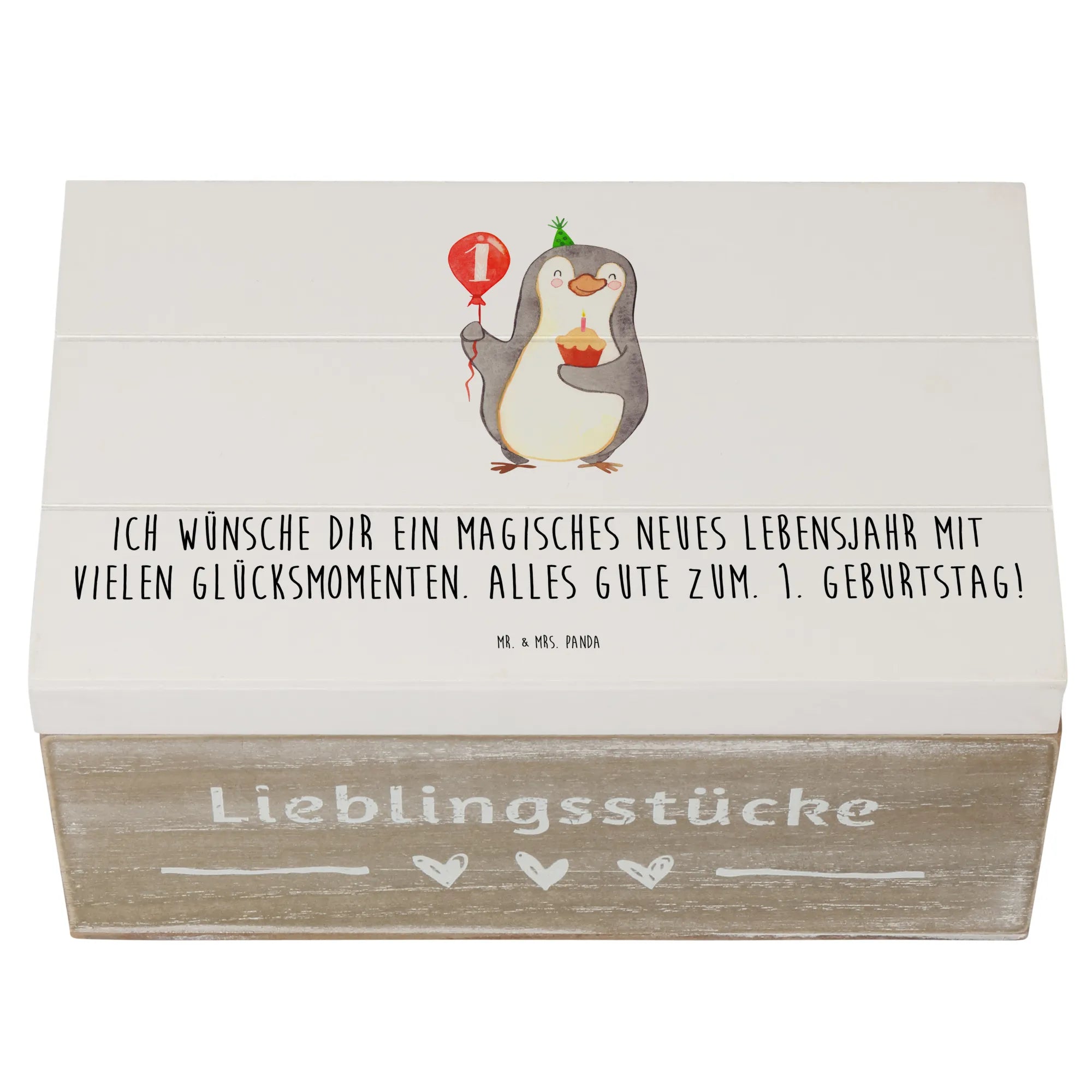 Feiere den ersten Geburtstag deines kleinen Lieblings mit unserer liebevollen Holzkiste im süßen Pinguin-Design! 🎉 Diese wunderschöne Holzkiste von Mr. & Mrs. Panda ist das ideale Geschenk zur Geburtstagsfeier und eignet sich hervorragend als Erinnerungskiste für alle wertvollen Schätze der Kindheit.