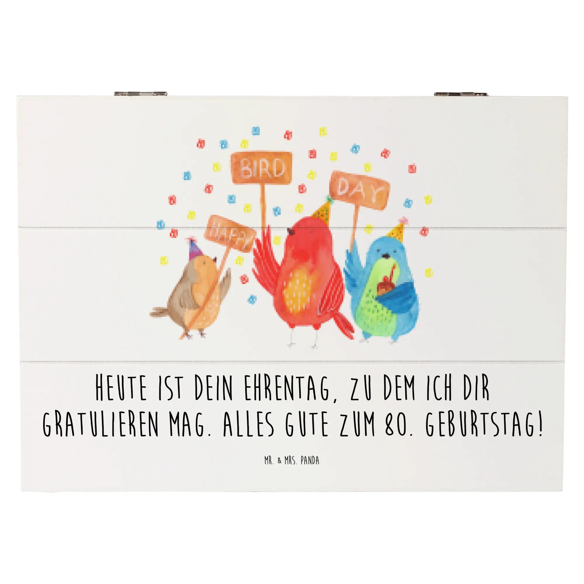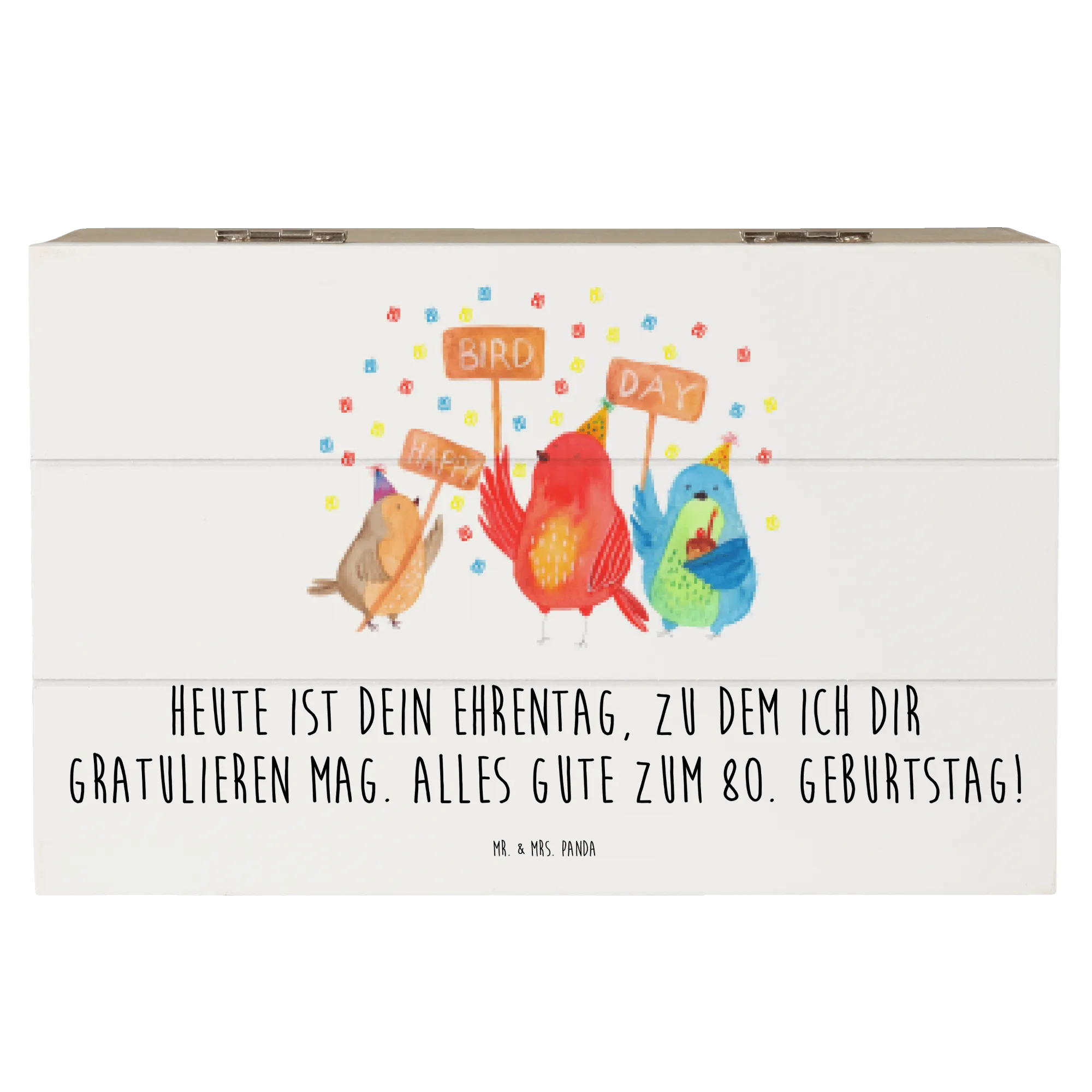 Die wunderschöne Holzkiste "80. Geburtstag Happy Bird Day" von Mr. & Mrs. Panda ist das perfekte Geschenk für diesen ganz besonderen Anlass.