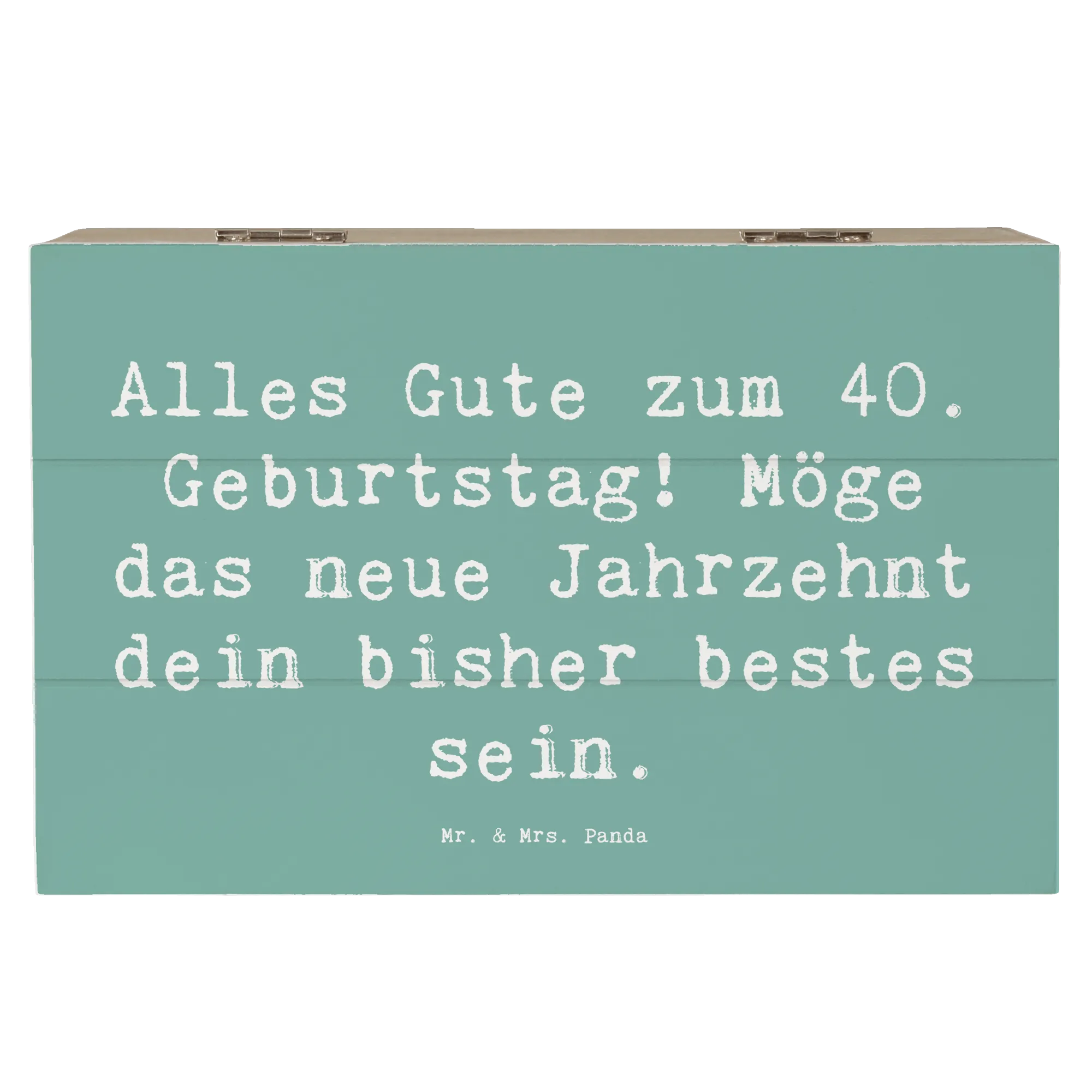 Suchst du das perfekte Geschenk zum 40. Geburtstag? Dann ist unsere wunderschöne Holzkiste von Mr. & Mrs. Panda genau das richtige für dich! Diese Erinnerungskiste, bedruckt mit dem herzlichen Spruch "Alles Gute zum 40. Geburtstag! Möge das neue Jahrzehnt dein bisher bestes sein." ist eine echte Schatztruhe für alle wichtigen Momente und Erinnerungen des Lebens.
