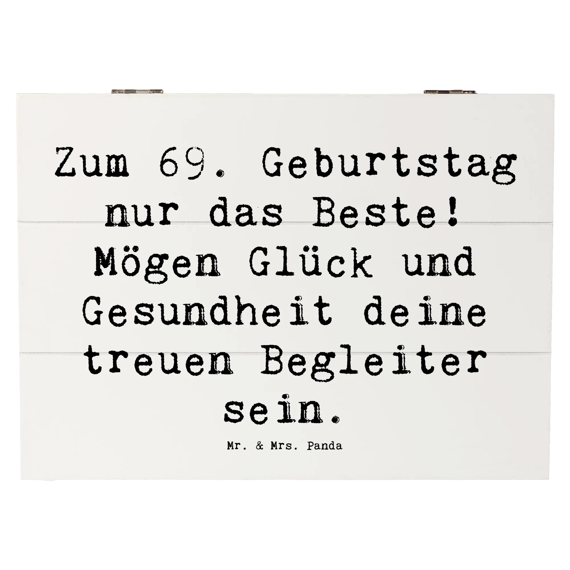 Die wunderschöne Holzkiste von Mr. & Mrs. Panda ist das perfekte Geschenk zum 69. Geburtstag! Mit dem liebevollen Spruch 'Zum 69. Geburtstag nur das Beste! Mögen Glück und Gesundheit deine treuen Begleiter sein.' zaubert diese Kiste ein Lächeln auf jedes Gesicht. Diese Erinnerungskiste ist nicht nur optisch ein Highlight, sondern auch ausgesprochen praktisch.
