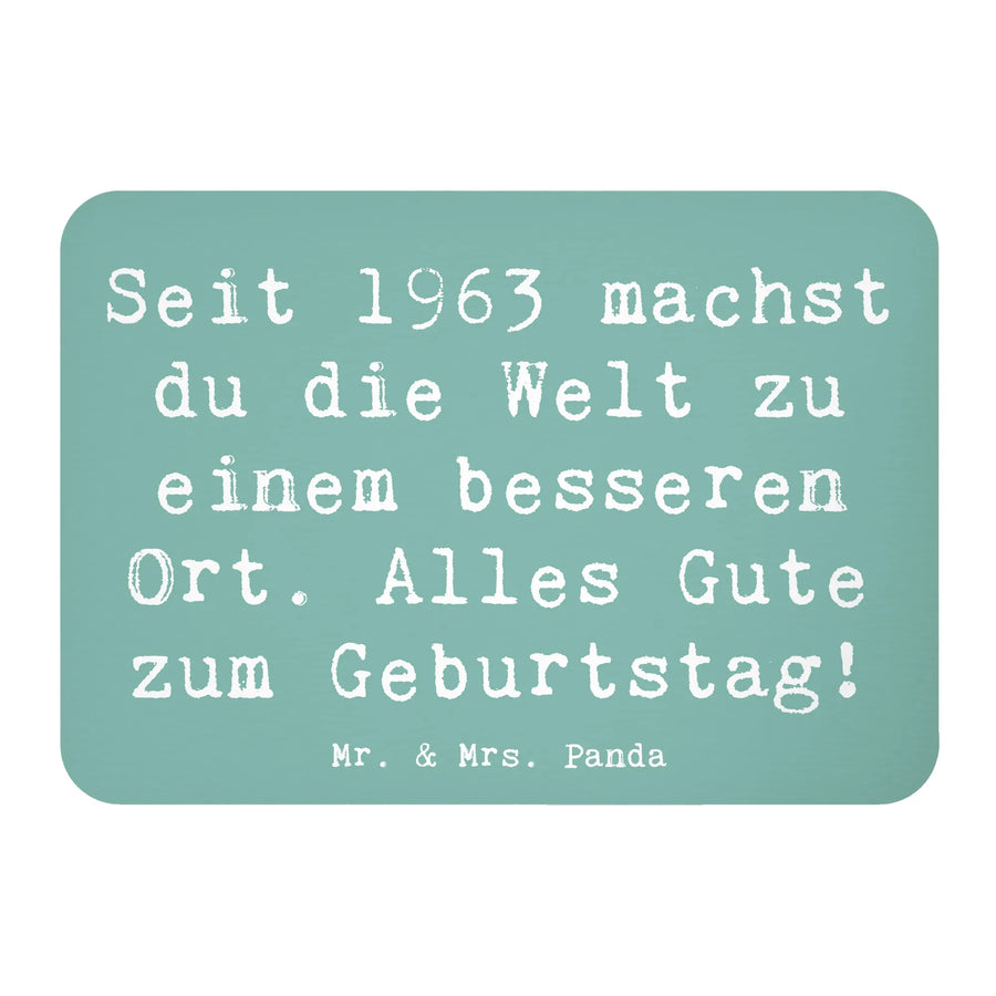 Der Kühlschrankmagnet "1963 Geburtstag" von Mr. & Mrs. Panda ist das perfekte Geschenk für alle, die in diesem Jahr geboren wurden! Mit seinem liebevoll gestalteten Motiv und dem Slogan "Seit 1963 machst du die Welt zu einem besseren Ort. Alles Gute zum Geburtstag!" bringt dieser Magnet nicht nur Freude, sondern auch einen Hauch von Nostalgie in jeden Haushalt. Egal, ob du ihn selbst behältst oder jemandem schenkst, dieser Magnet wird sicher ein Gesprächsthema bei jeder Geburtstagsfeier sein.