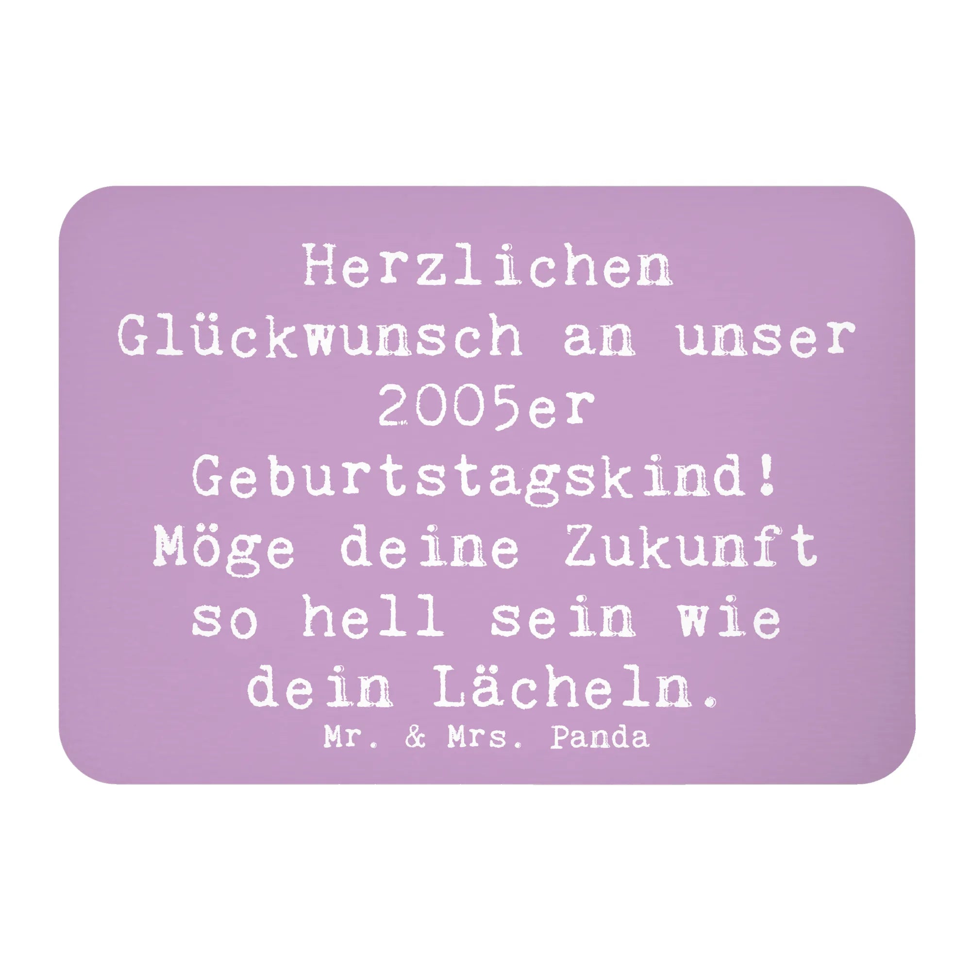 Der wunderschöne Kühlschrankmagnet "Herzlichen Glückwunsch an unser 2005er Geburtstagskind! Möge deine Zukunft so hell sein wie dein Lächeln!" von Mr. & Mrs. Panda ist das perfekte Geschenk für alle Geburtstagkinder, die im Jahr 2005 das Licht der Welt erblickt haben. Dieser besonders farbenfrohe und liebevoll gestaltete Magnet aus feinem MDF-Holz hat nicht nur eine angenehme Oberfläche, sondern er ist auch supermagnetisch.