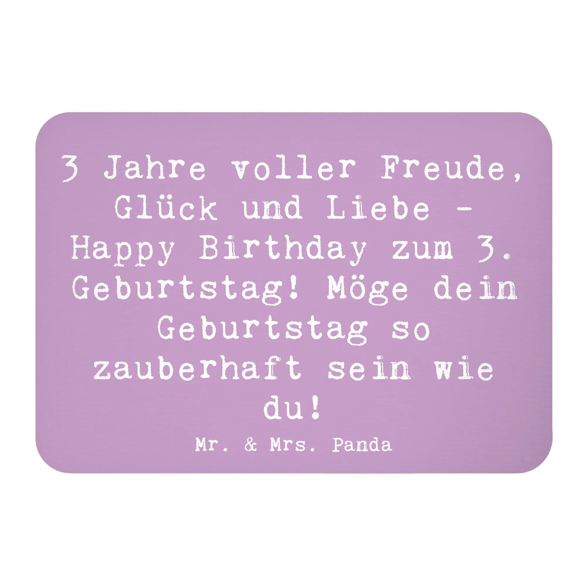 Der Magnetspruch "3 Jahre voller Freude, Glück und Liebe - Happy Birthday zum 3. Geburtstag! Möge dein Geburtstag so zauberhaft sein wie du!" ist die perfekte Geschenkidee für alle kleinen Geburtstagskinder, die ihren 3. Geburtstag feiern.