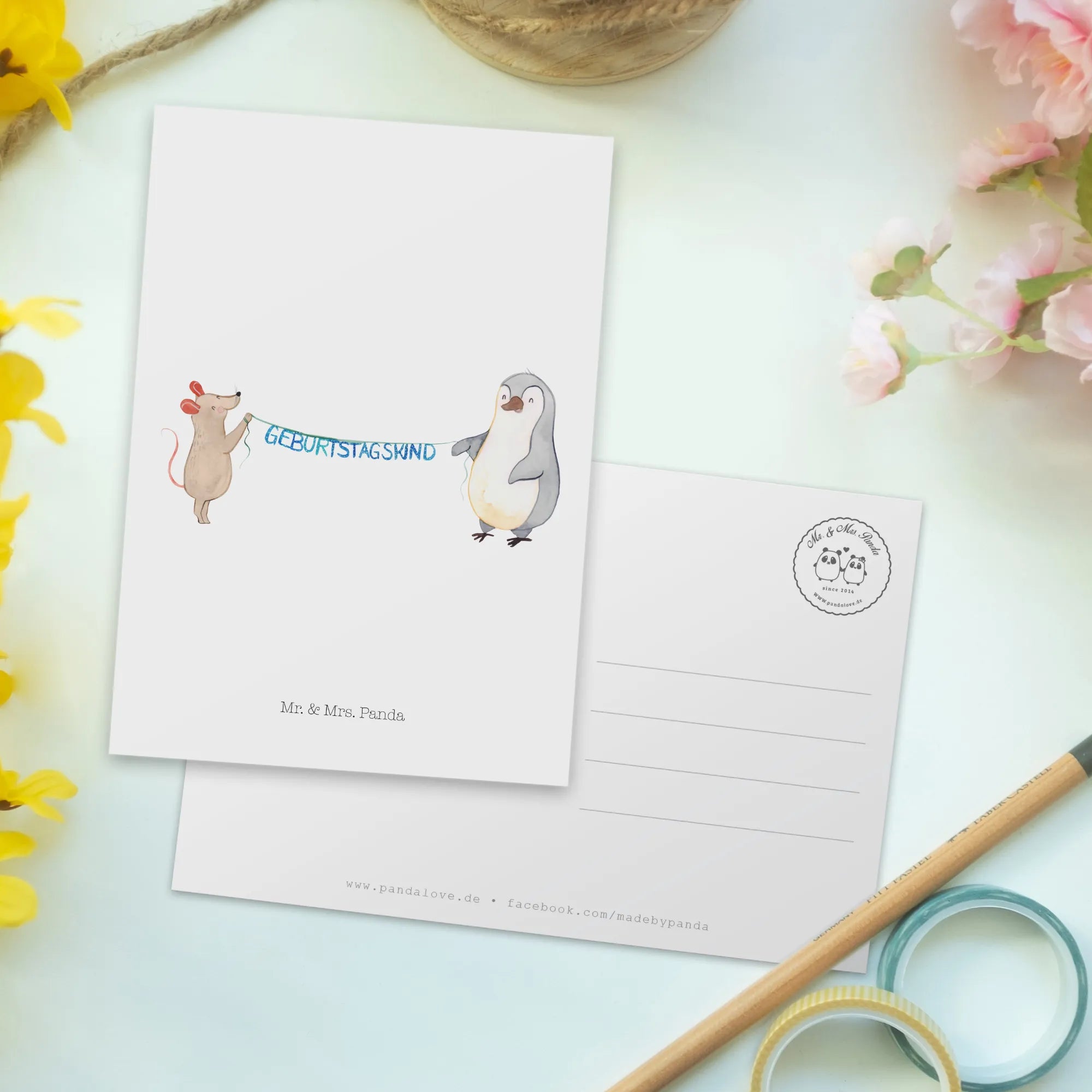 Postkarte Maus & Pinguin – Geburtstagskarte von Mr. & Mrs. Panda