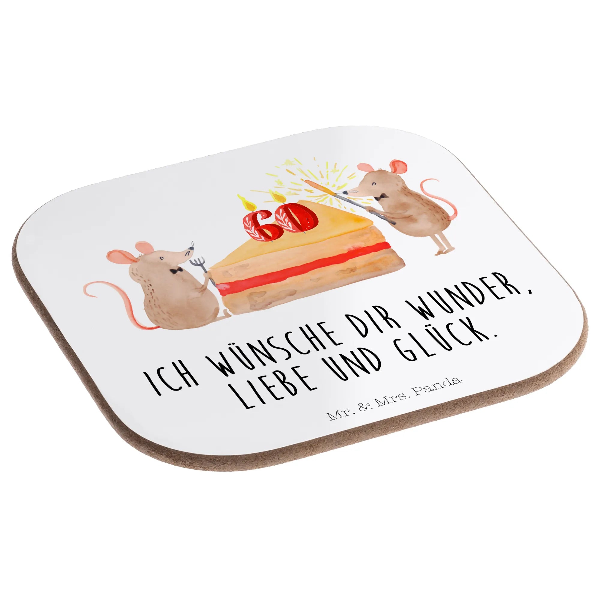Untersetzer 60. Geburtstag Mäuse Kuchen - mit Spruch