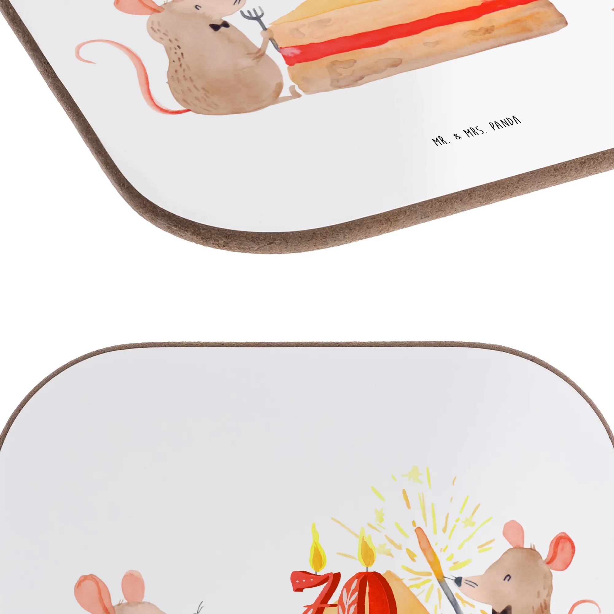Quadratische Untersetzer 70. Geburtstag Mäuse Kuchen - mit Spruch