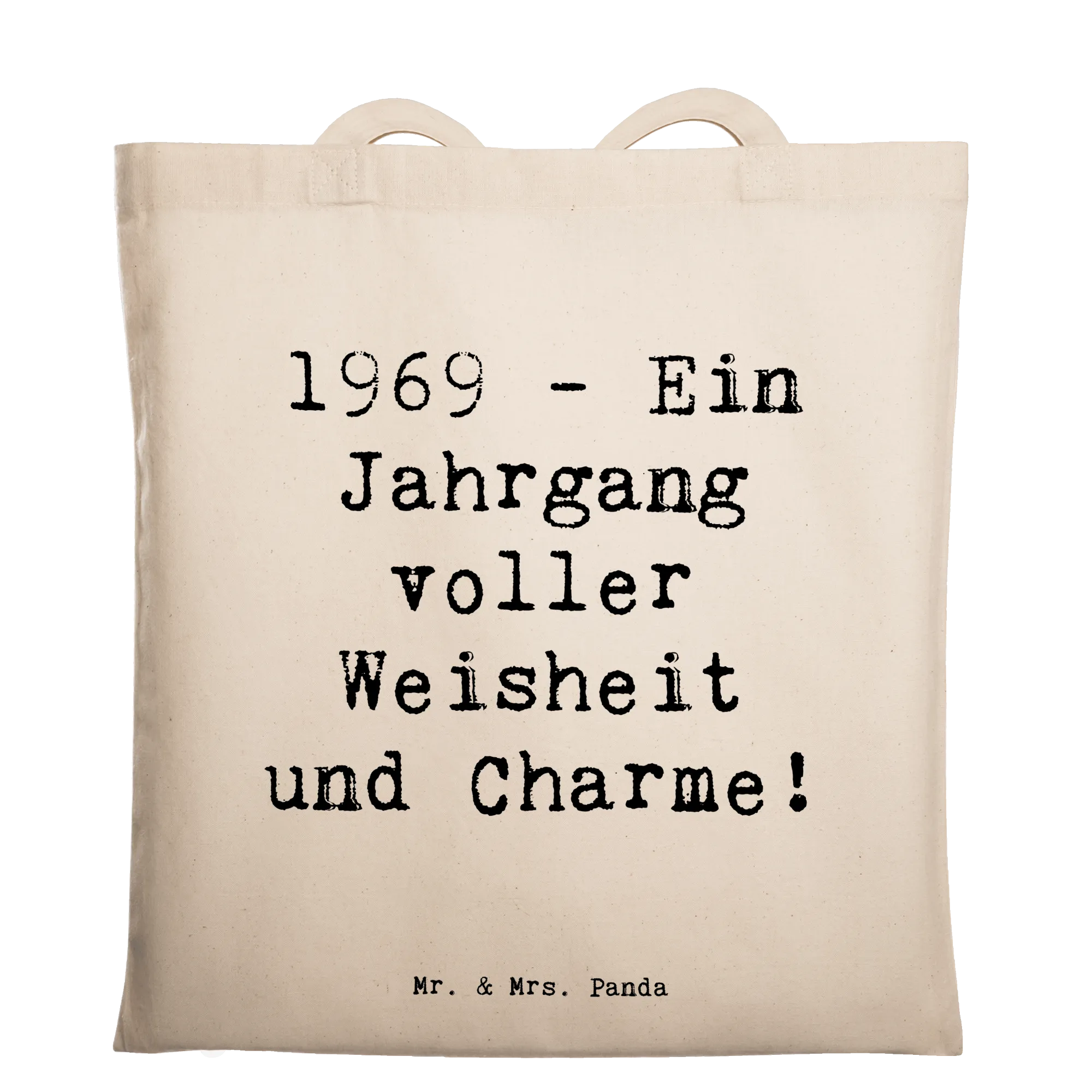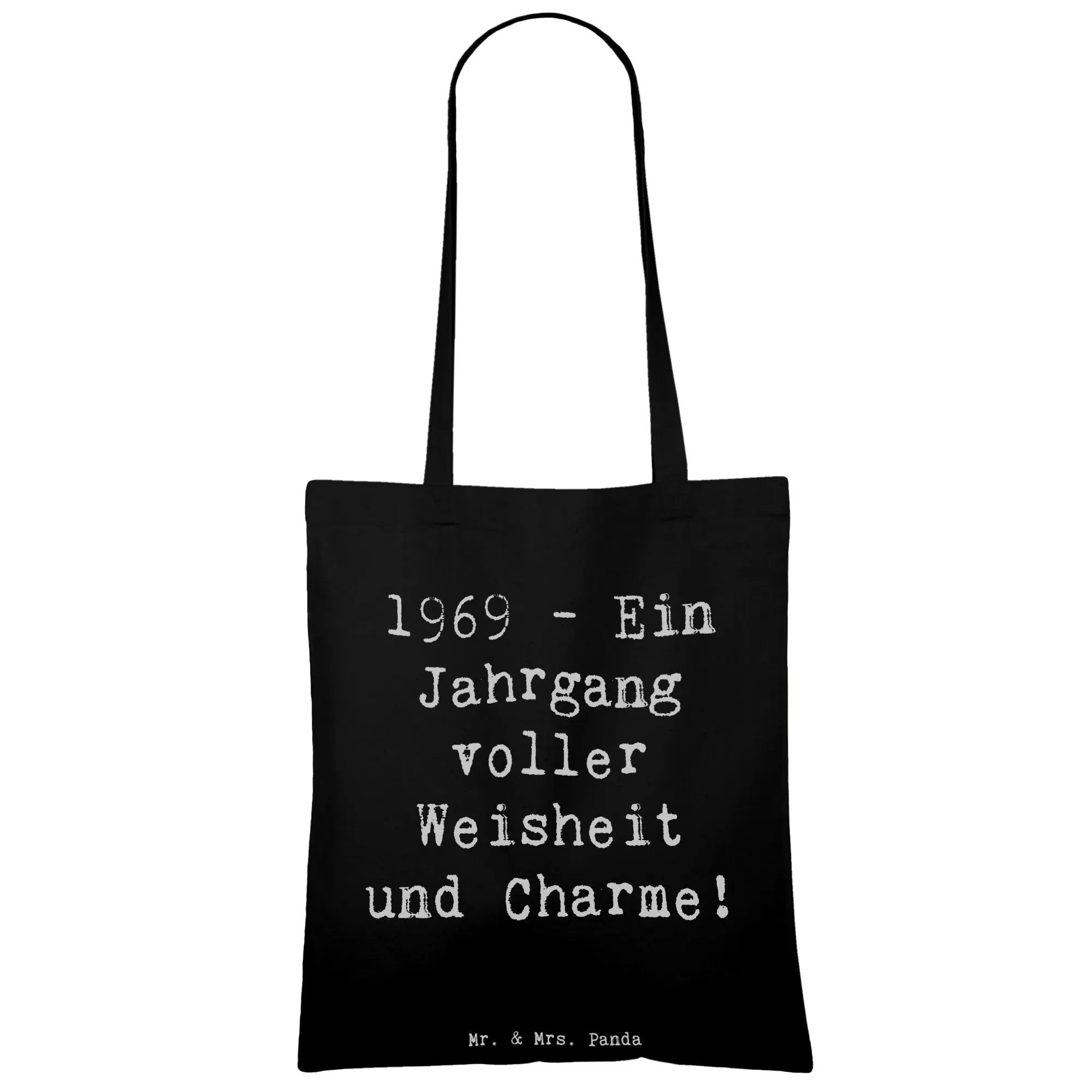 Die Tragetasche 1969 Geburtstag von Mr. & Mrs. Panda ist das perfekte Geschenk für all diejenigen, die im Jahr 1969 das Licht der Welt erblickt haben. Die charmante Tasche kommt mit dem liebevoll gestalteten Spruch: '1969 - Ein Jahrgang voller Weisheit und Charme!'. Dieses humorvolle Design eignet sich nicht nur als stilvolles Accessoire, sondern auch als wunderbare Erinnerung daran, wie besonders dieser Jahrgang ist.