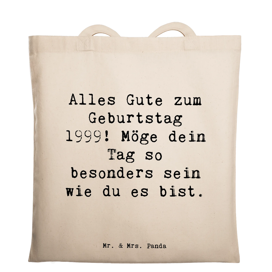 Suchst du ein Geschenk, das zugleich praktisch und persönlich ist? Unsere Tragetasche aus der Geburtstag Geburtsjahr-Kollektion von Mr. & Mrs. Panda ist eine liebevoll gestaltete Jutetasche, die Freude schenkt. Der charmante Spruch kombiniert mit handgezeichnetem Design macht diese Einkaufstasche zu einem echten Highlight für alle, die 1999 geboren sind.