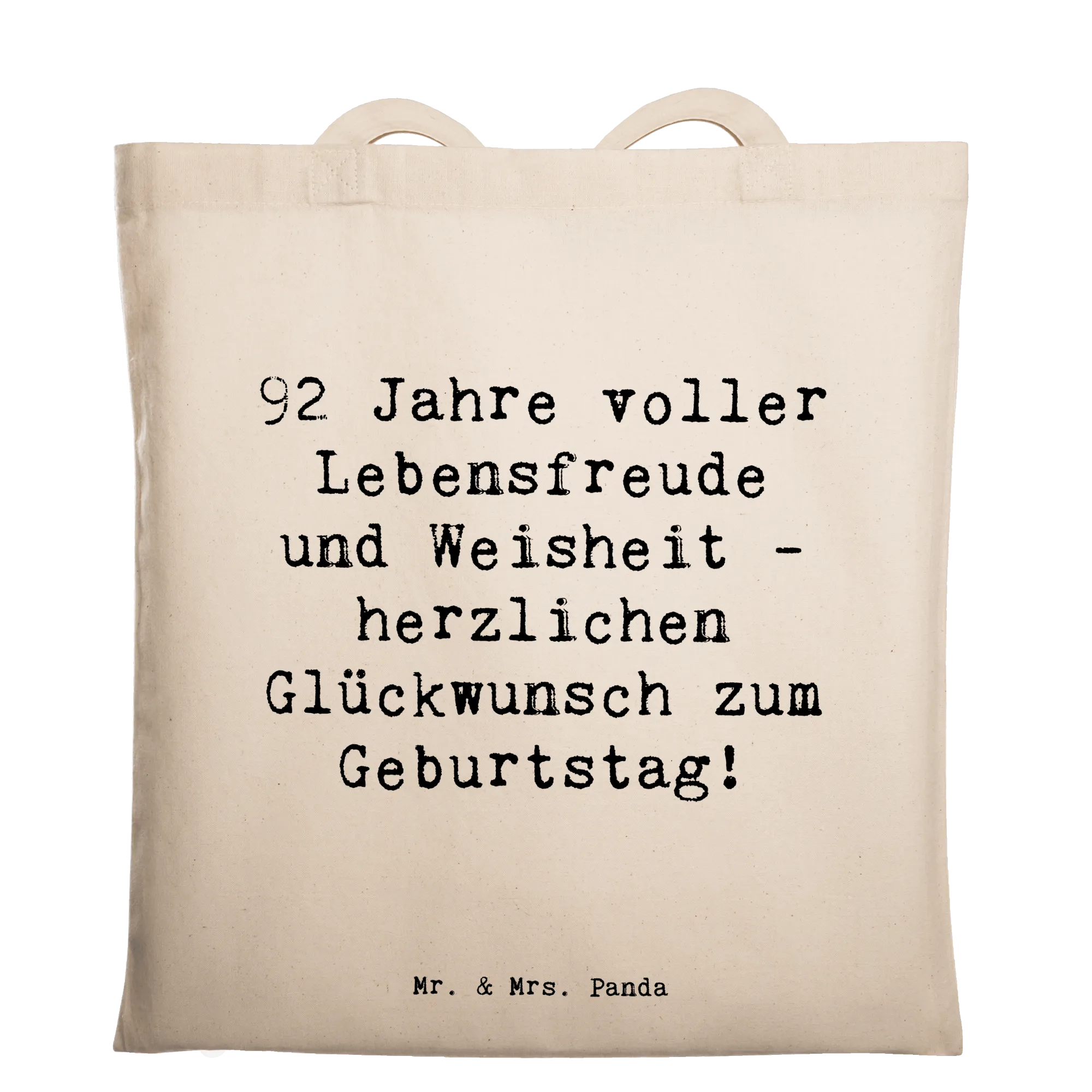 Tote Bag Spruch 92. Geburtstag - Transparent