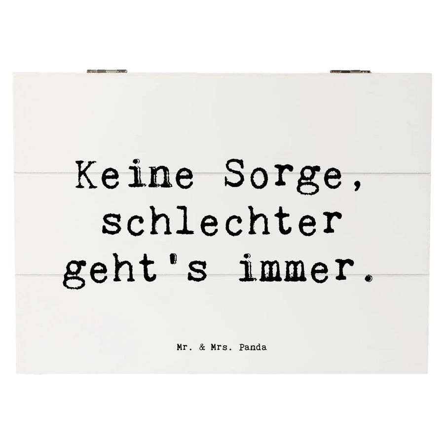 Mit einem ansprechenden Design und dem motivierenden Spruch 'Keine Sorge, schlechter geht's immer' bringt sie ein Lächeln in die düstersten Tage. Diese robuste Kiste ist nicht nur eine attraktive Dekoration, sondern auch eine praktische Aufbewahrungslösung für deine wertvollen Schätze.