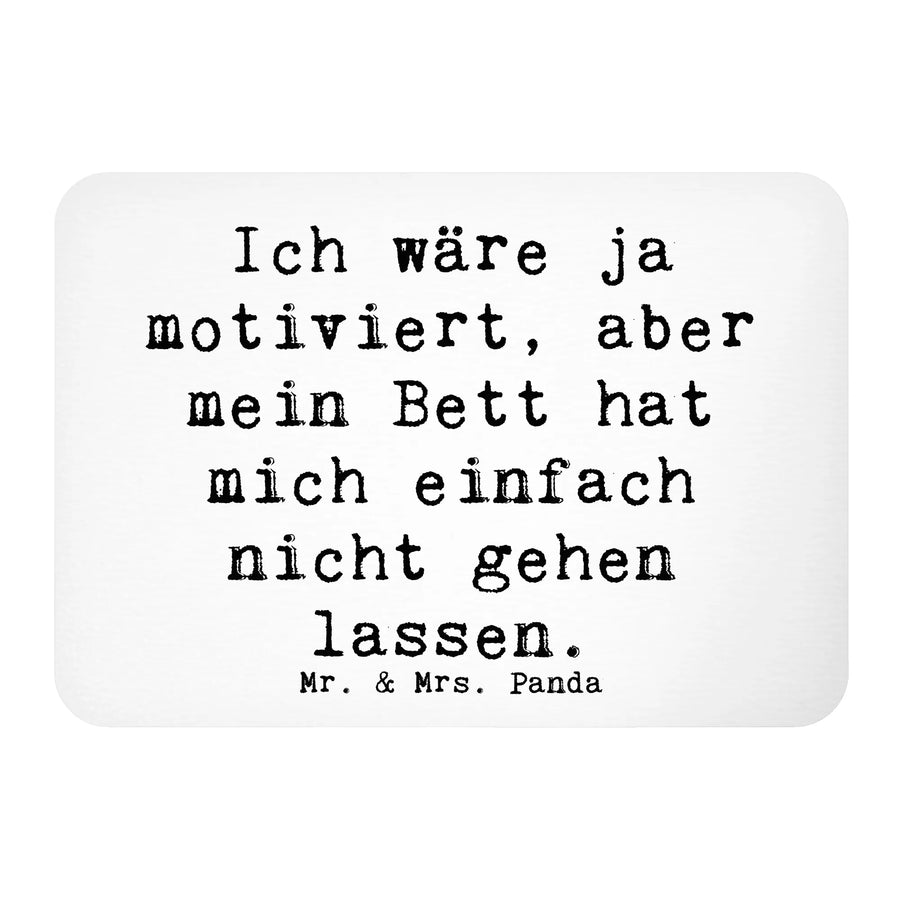 Der Mr. & Mrs. Panda Magnet mit der motivierenden Botschaft "Ich wäre ja motiviert, aber mein Bett hat mich einfach nicht gehen lassen" ist das perfekte Geschenk für alle, die eine Portion Motivation in ihrem Alltag brauchen!