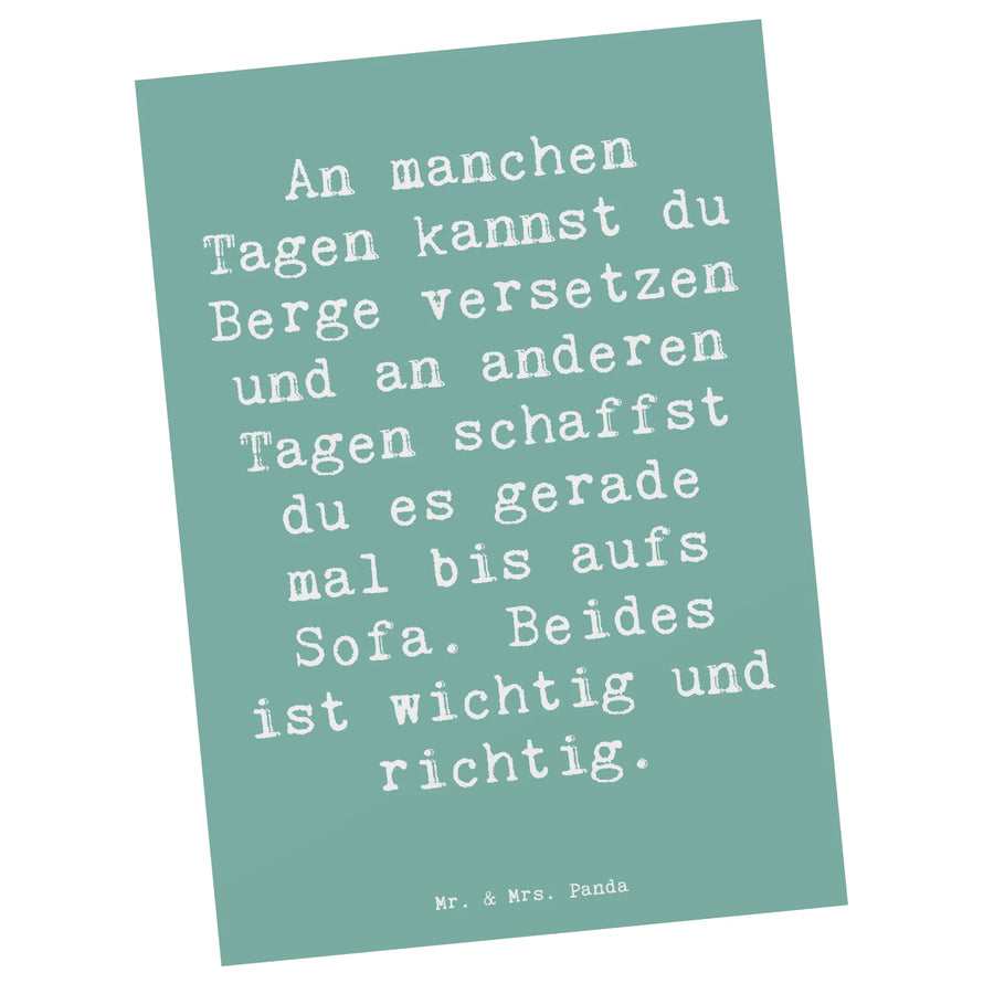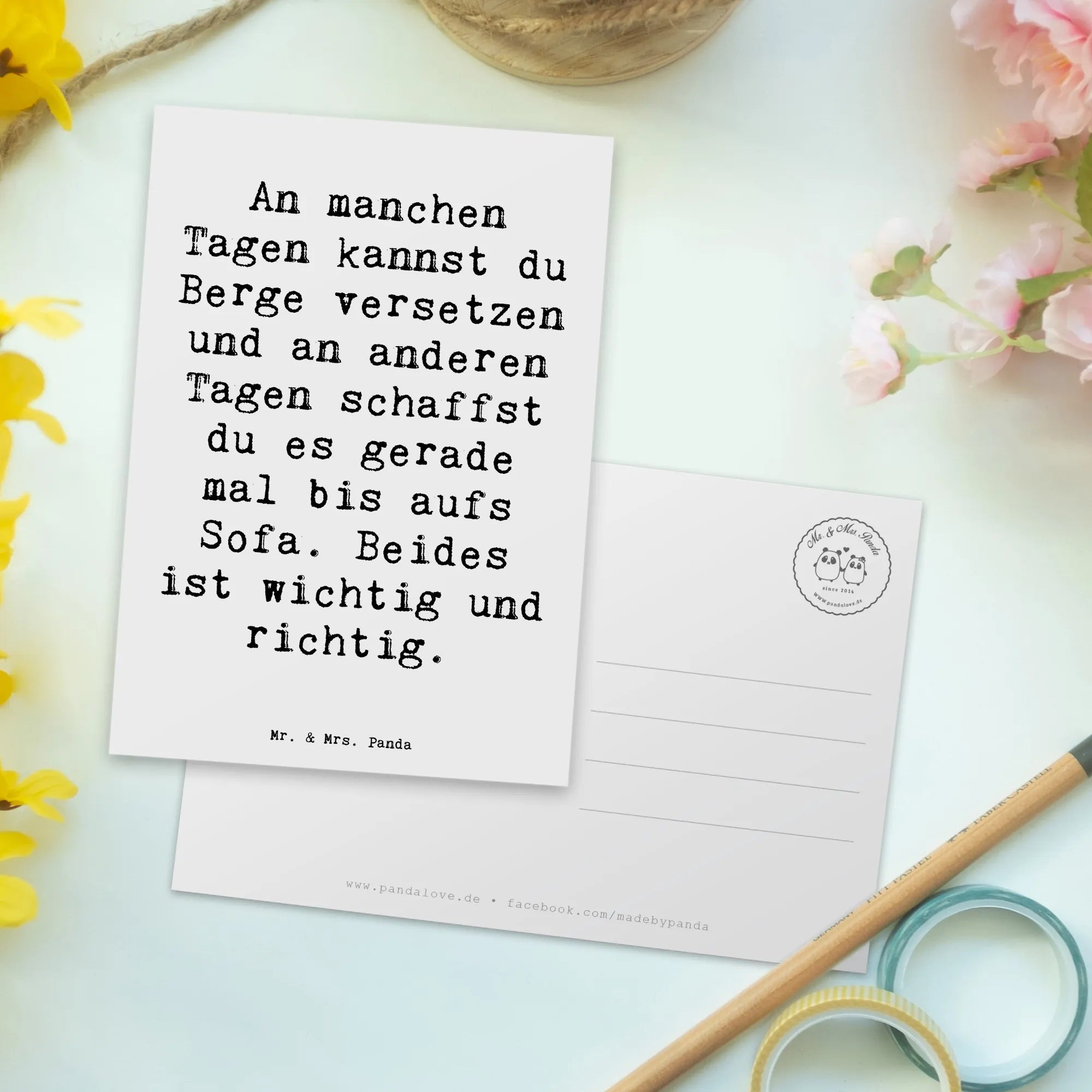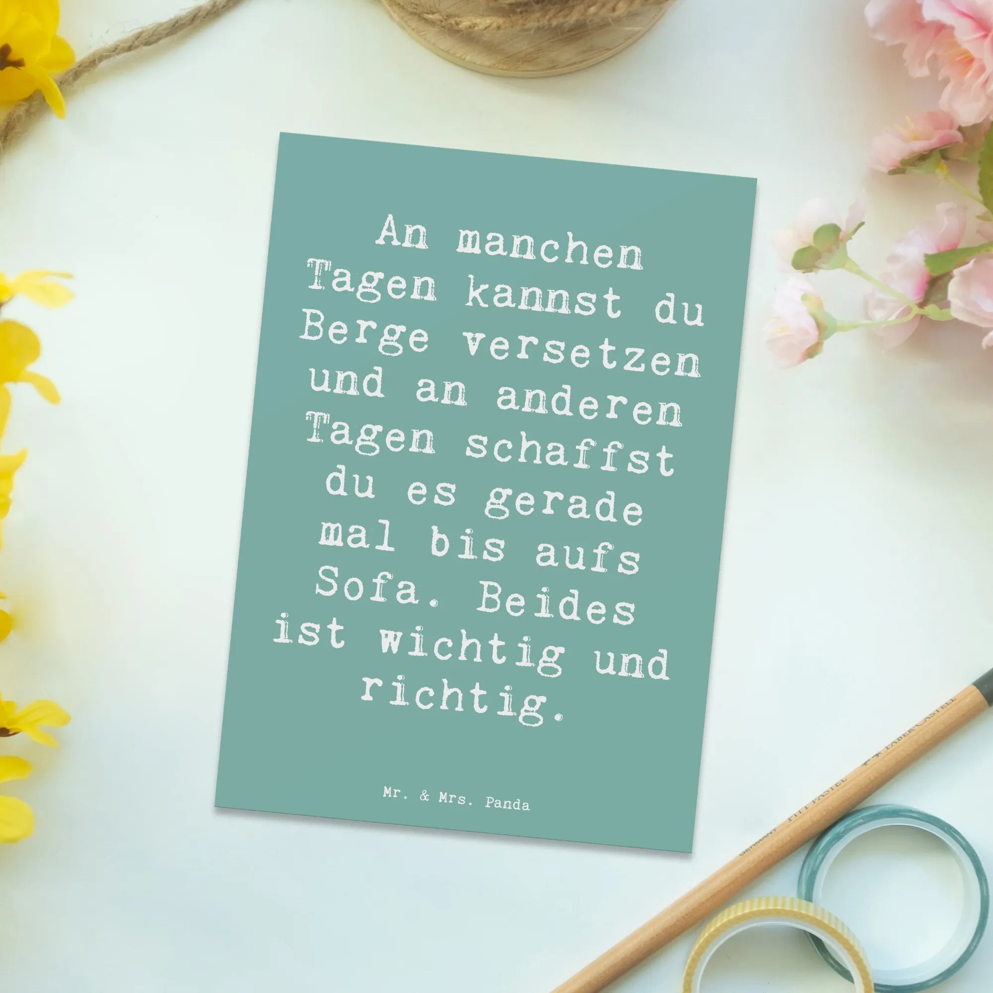 Perfekt für Anlässe wie Geburtstagsgratulationen, Dankeswünsche oder einfach nur so, um Freude zu verbreiten. Der Spruch auf der Karte, "An manchen Tagen kannst du Berge versetzen und an anderen Tagen schaffst du es gerade mal bis aufs Sofa. Beides ist wichtig und richtig.", erinnert uns daran, dass jeder Tag seine eigenen Herausforderungen mit sich bringt, aber auch seine besonderen Momente.