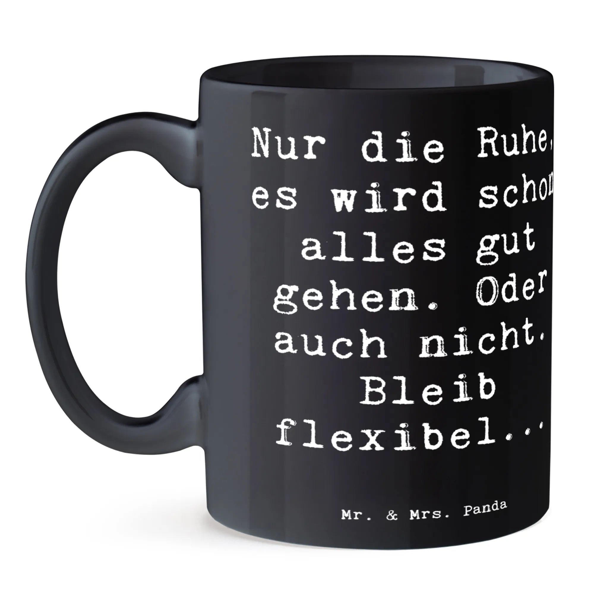 Mr. & Mrs. Panda Tasse „Gelassenheit in Krisen“ – die perfekte Kaffeetasse mit Spruch für alle Tage. Wenn der Alltag dich einholt, schenkt dir diese Tasse einen kleinen Augenblick der Ruhe und ein Augenzwinkern. Der liebevoll gestaltete Spruch „Nur die Ruhe, es wird schon alles gut gehen. Oder auch nicht. Bleib flexibel...“ ist ein Mutmacher und passt wunderbar zu Kaffee, Tee oder Kakao. ☕️