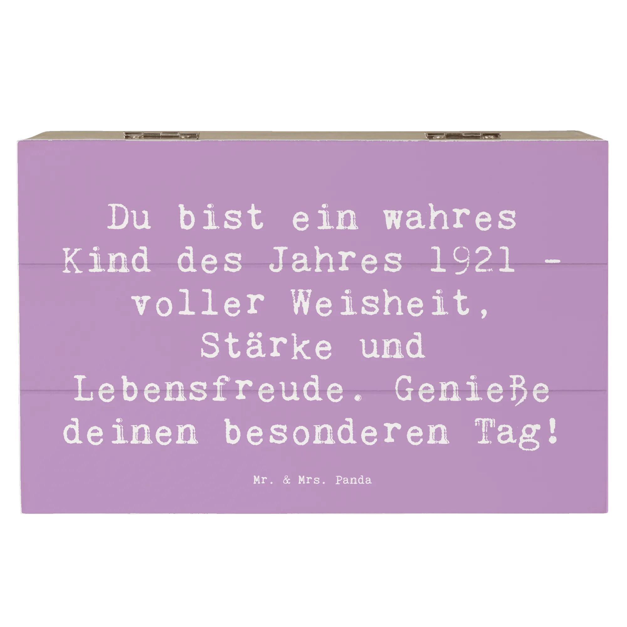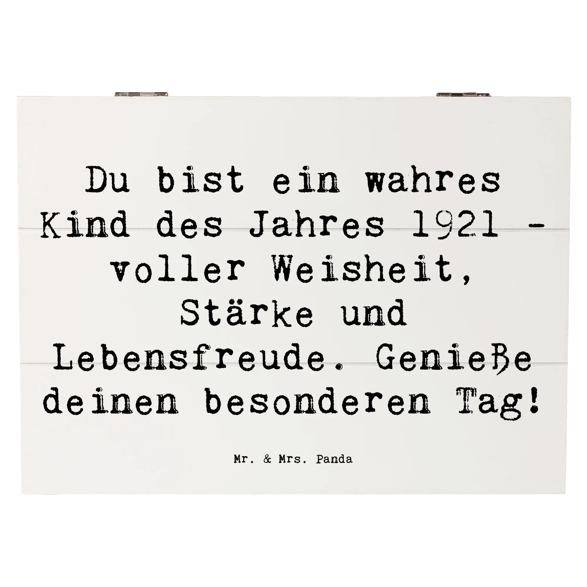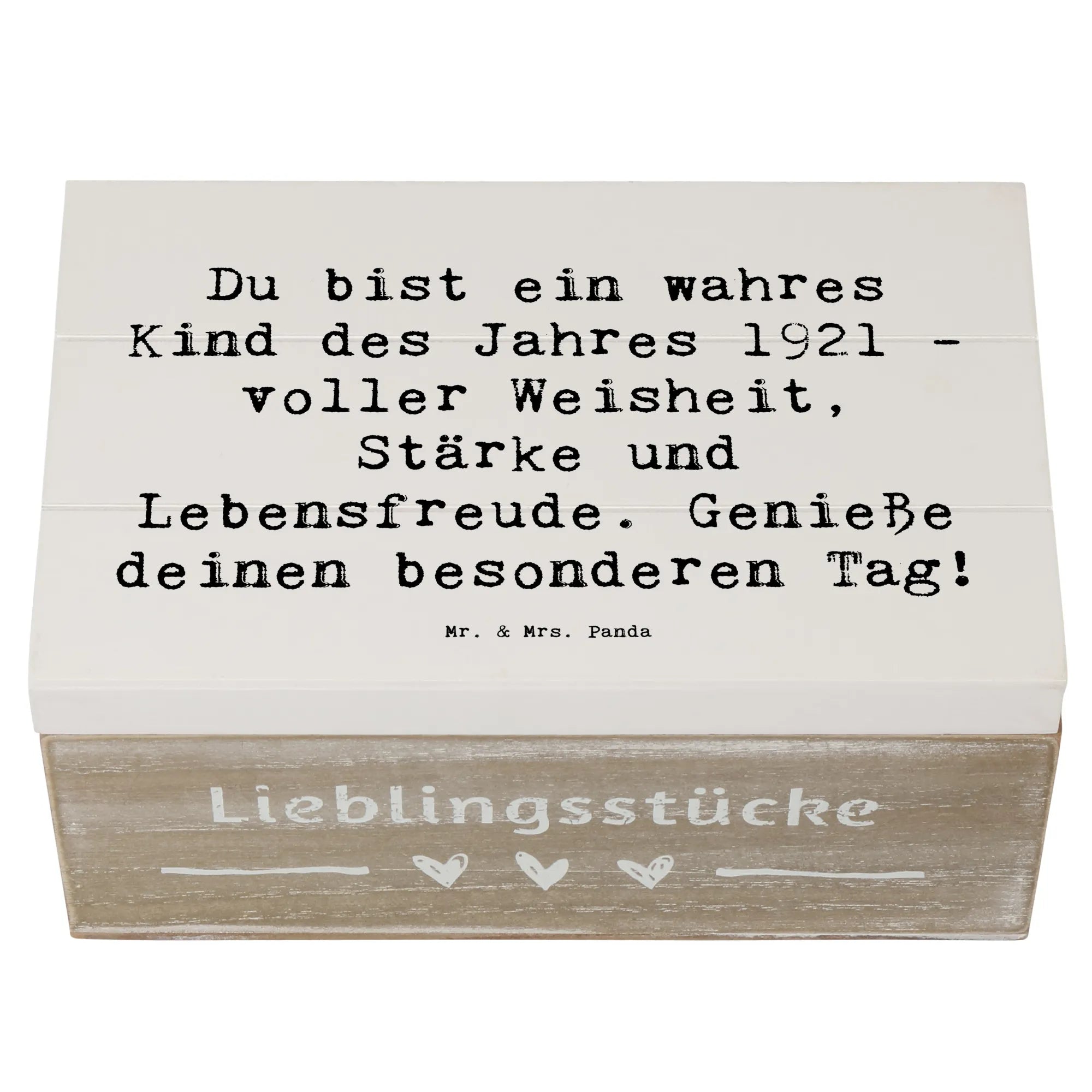 Die wunderschöne Holzkiste von Mr. & Mrs. Panda mit dem besonderen Motiv "1921 Geburtstag" ist das perfekte Geschenk für all jene, die in diesem Jahr geboren wurden und ihren Geburtstag gebührend feiern möchten. Diese Erinnerungskiste ist nicht nur ein praktischer Aufbewahrungsort für kostbare Schätze, sondern auch ein wunderschöner Blickfang in jedem Wohnraum.