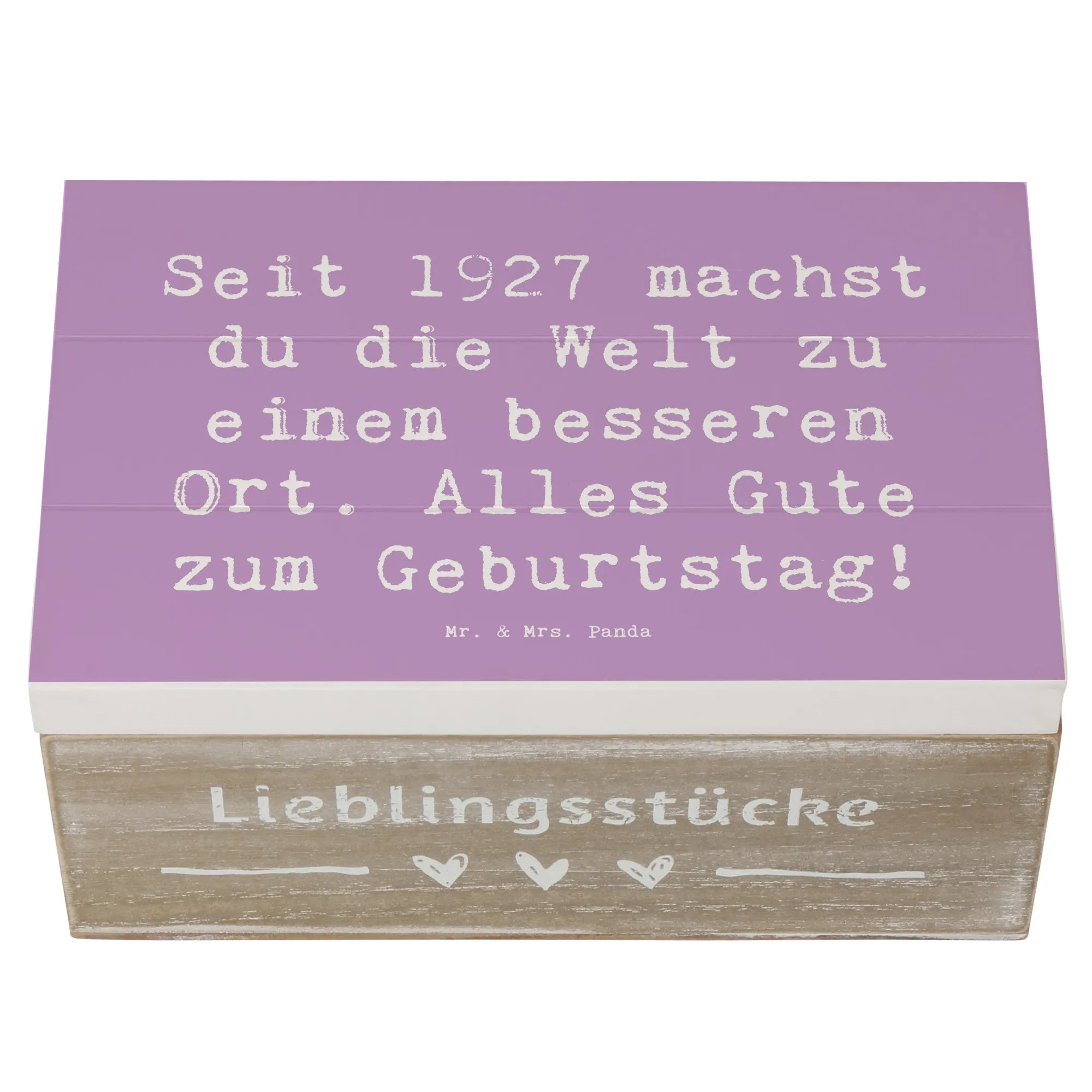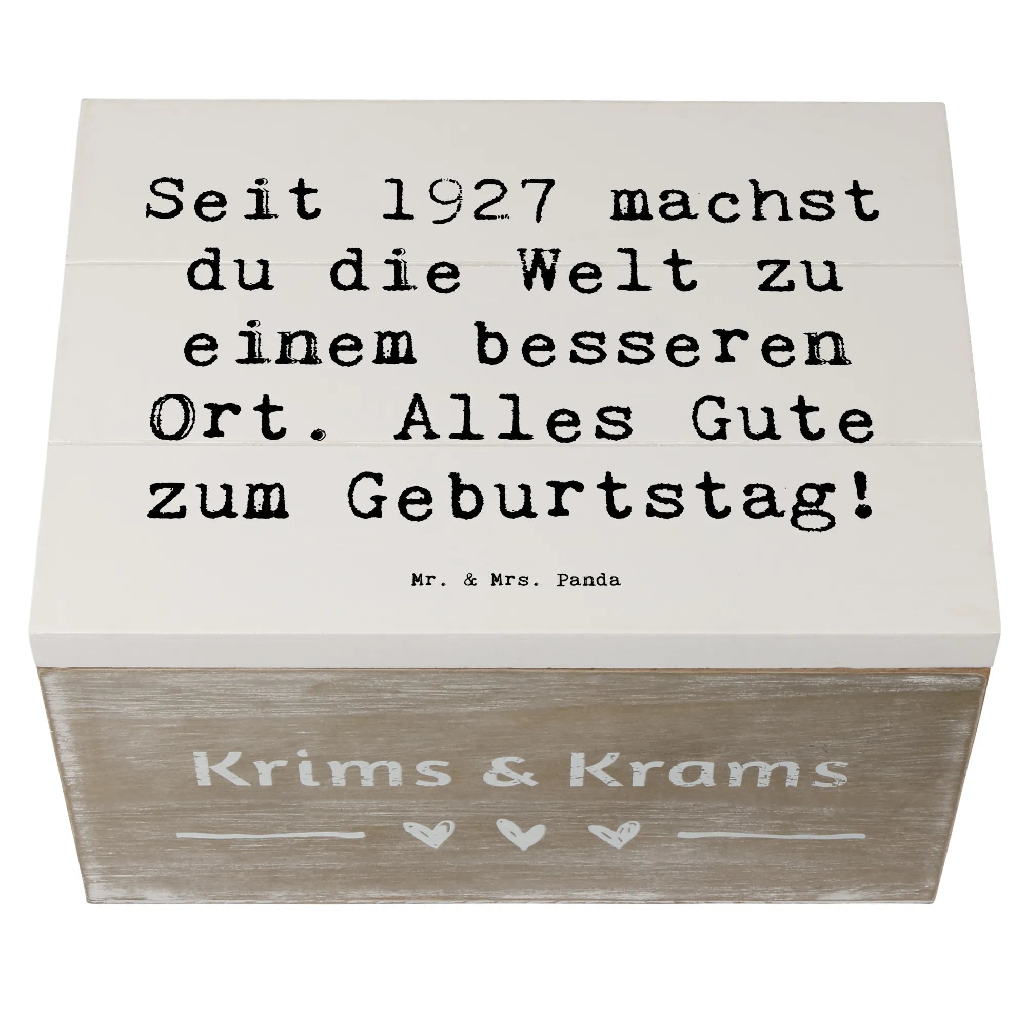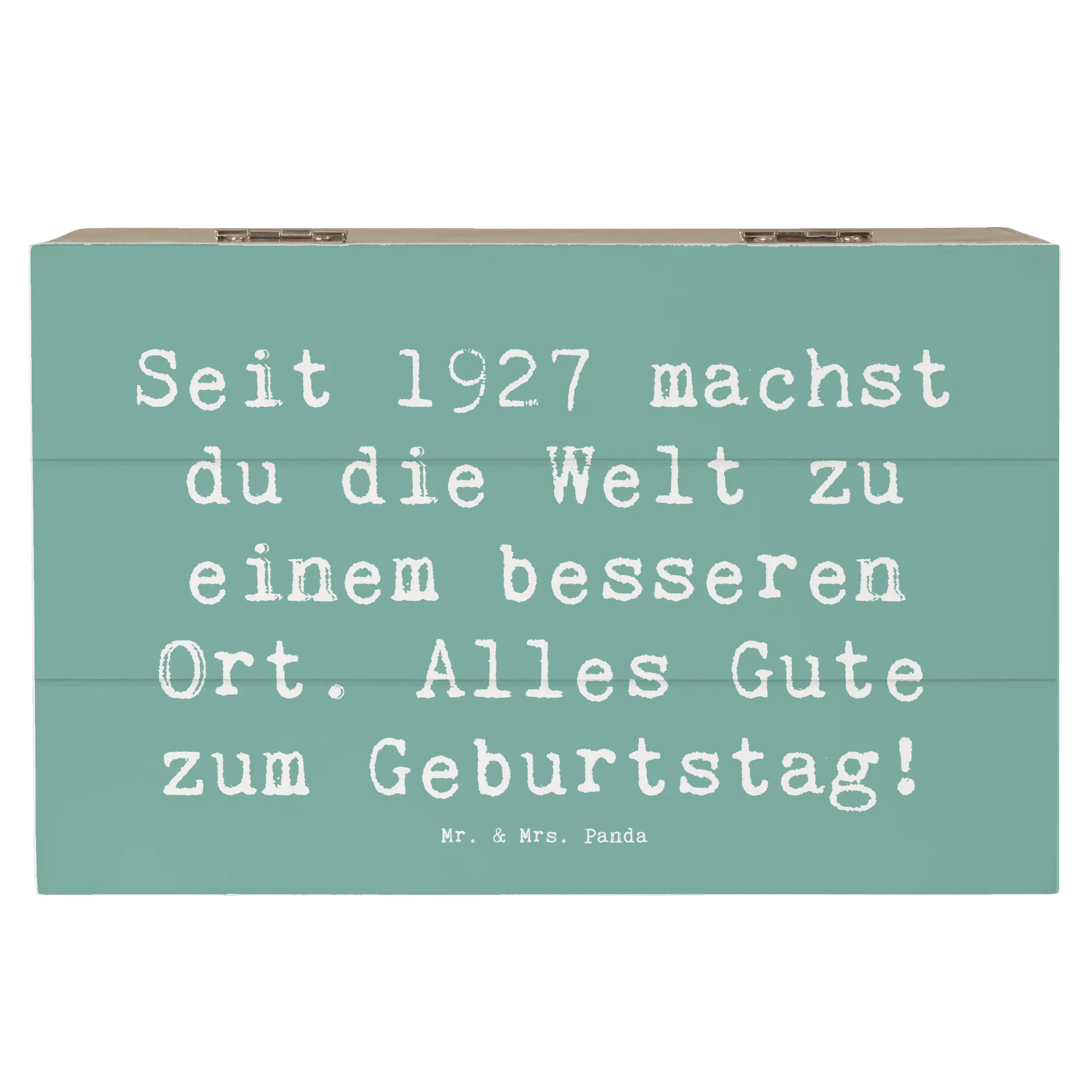 Die wunderschöne Holzkiste von Mr. & Mrs. Panda ist das perfekte Geschenk für jeden Geburtstag! Diese spezielle Erinnerungskiste mit dem Motiv "1927 Geburtstag" und dem liebevollen Spruch "Seit 1927 machst du die Welt zu einem besseren Ort. Alles Gute zum Geburtstag!" ist nicht nur ein Hingucker, sondern auch eine nachhaltige und praktische Aufbewahrungsbox.