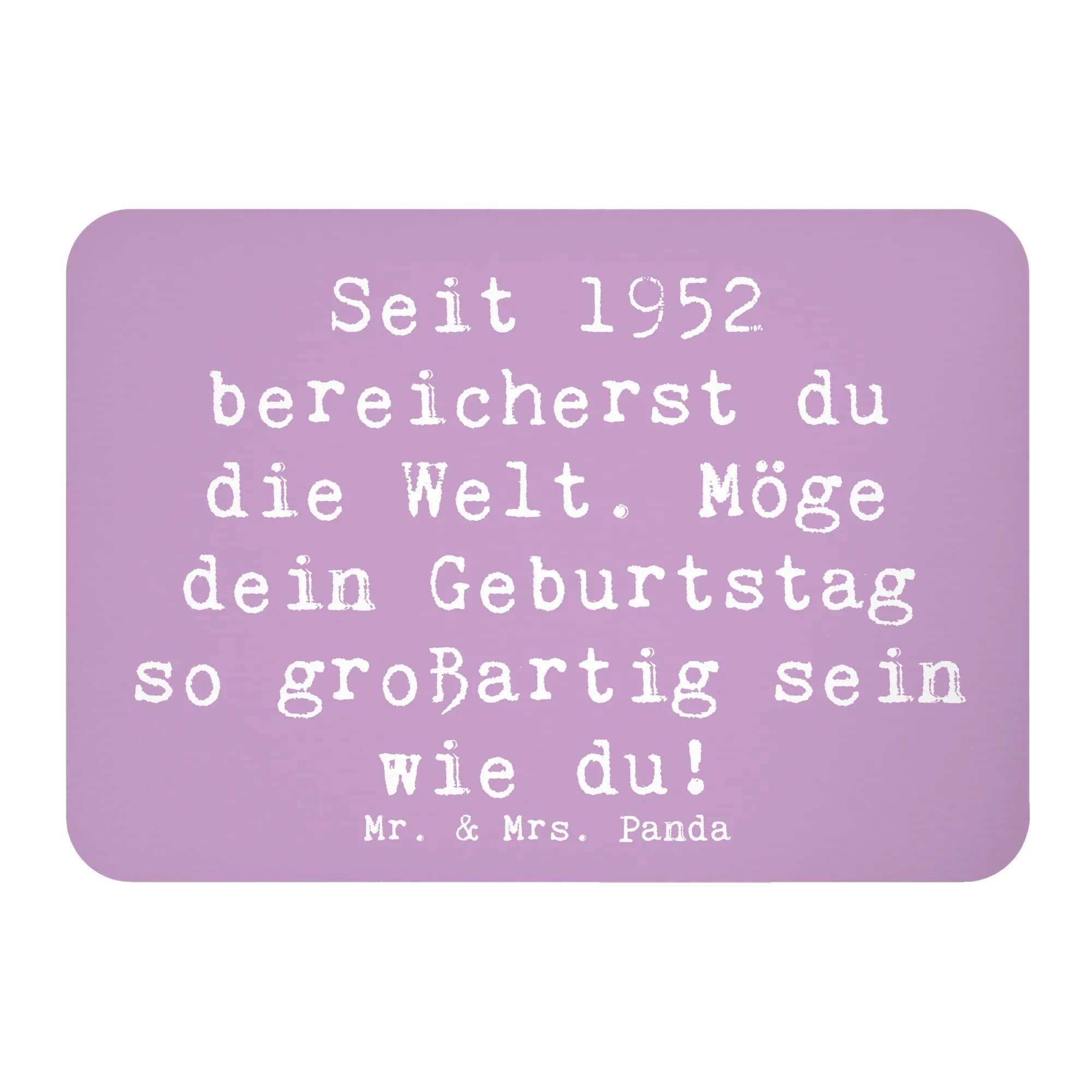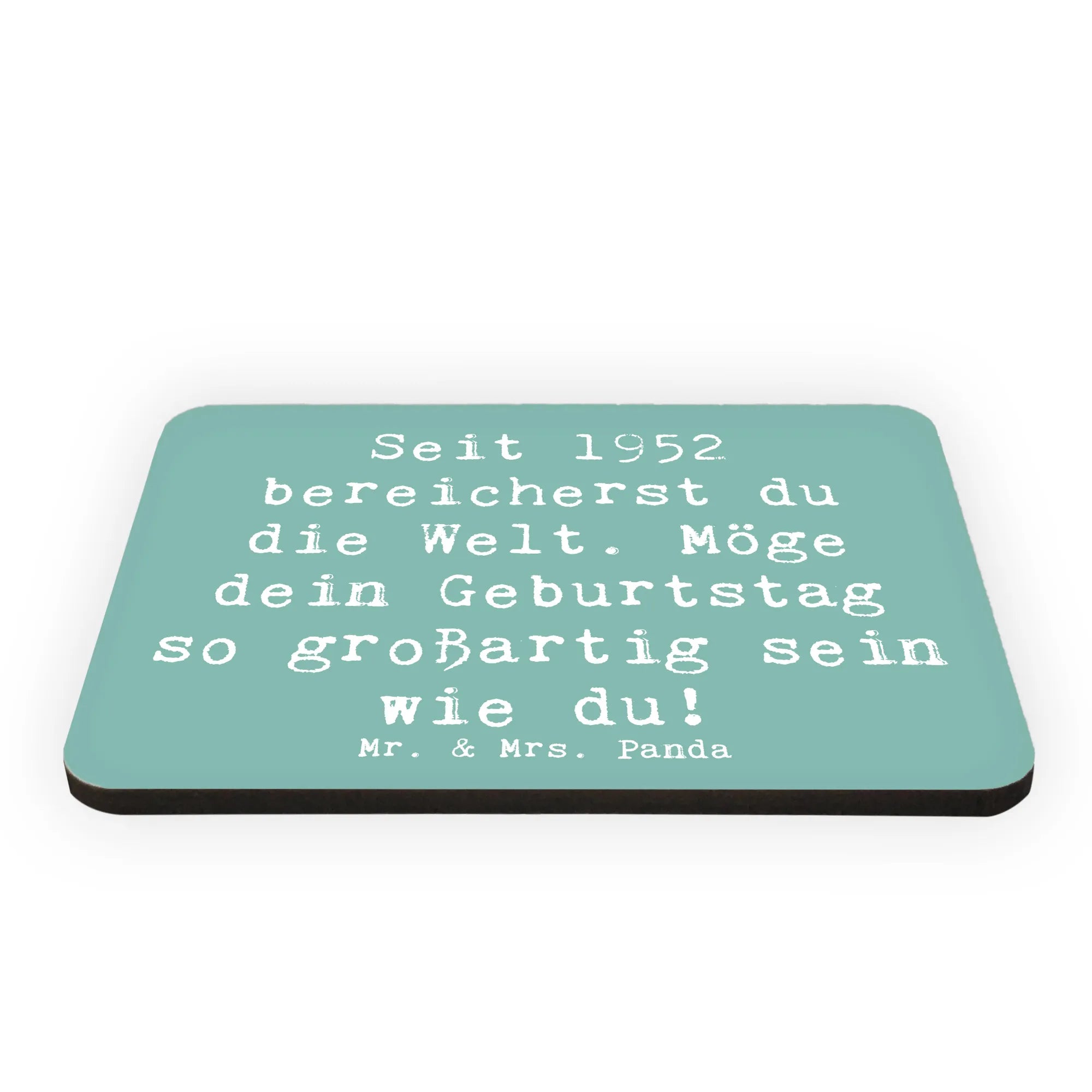 Der perfekte Kühlschrankmagnet von Mr. & Mrs. Panda für alle, die 1952 geboren wurden! Mit dem Motiv 'Seit 1952 bereicherst du die Welt. Möge dein Geburtstag so großartig sein wie du!' ist er nicht nur eine entzückende Kühlschrankdekoration, sondern auch eine tolle Möglichkeit, Glückwünsche zu übermitteln.