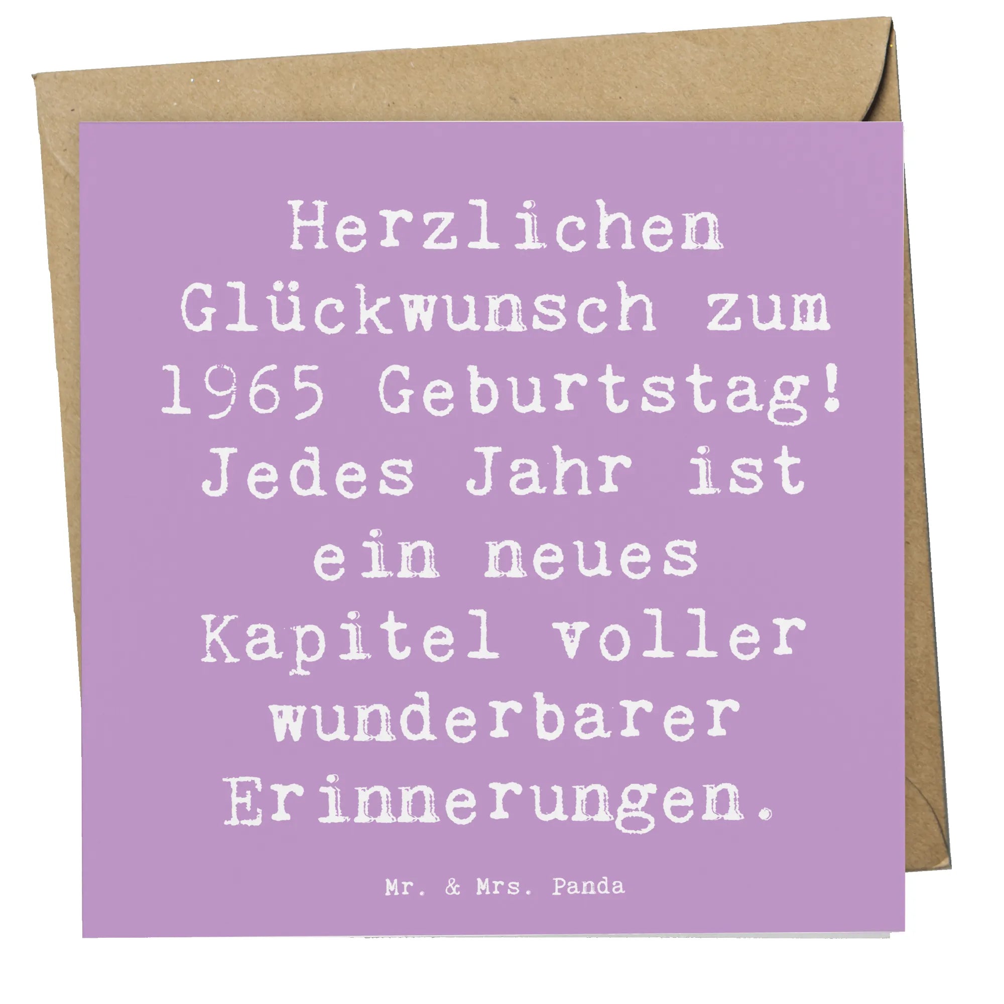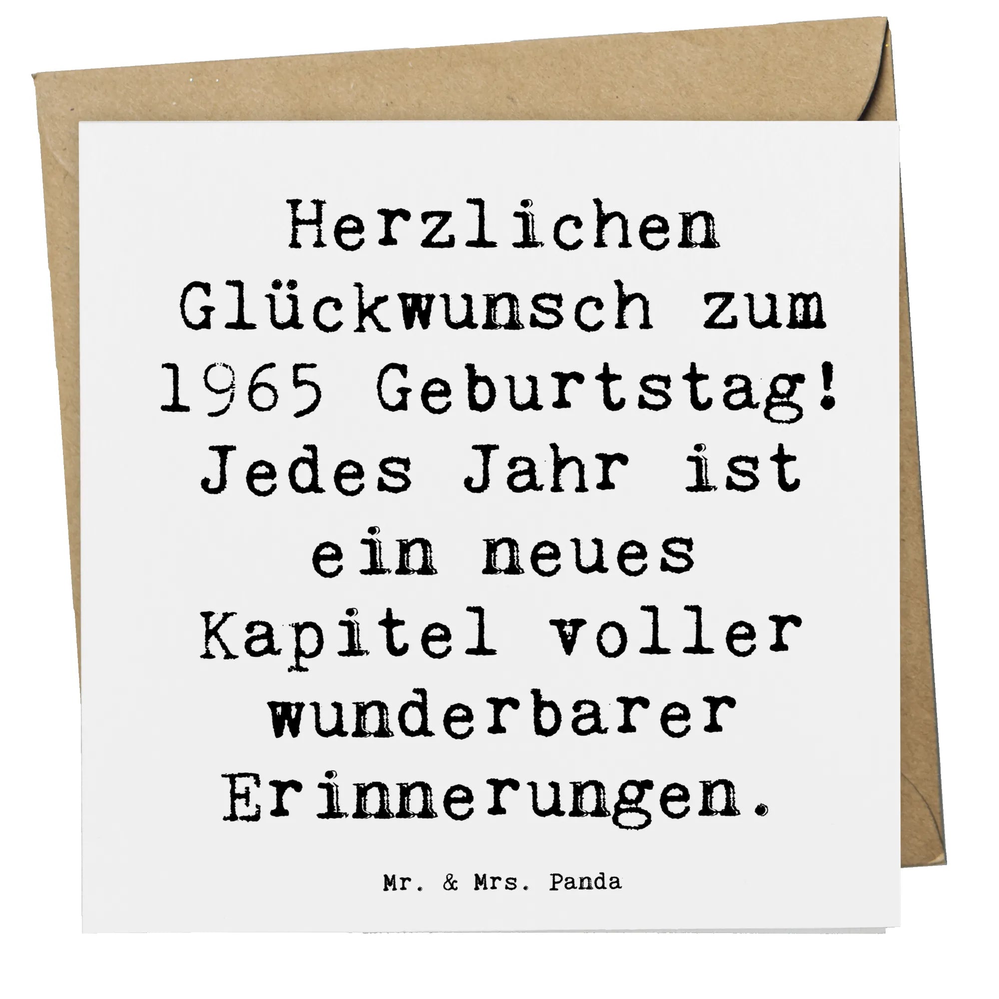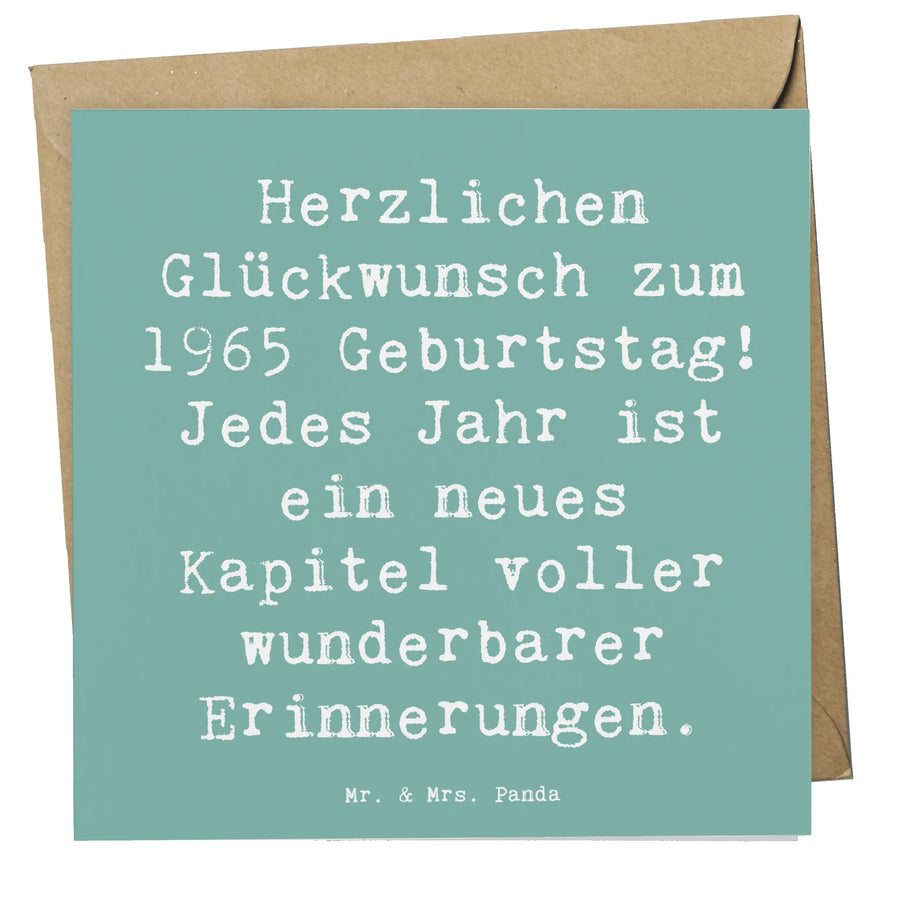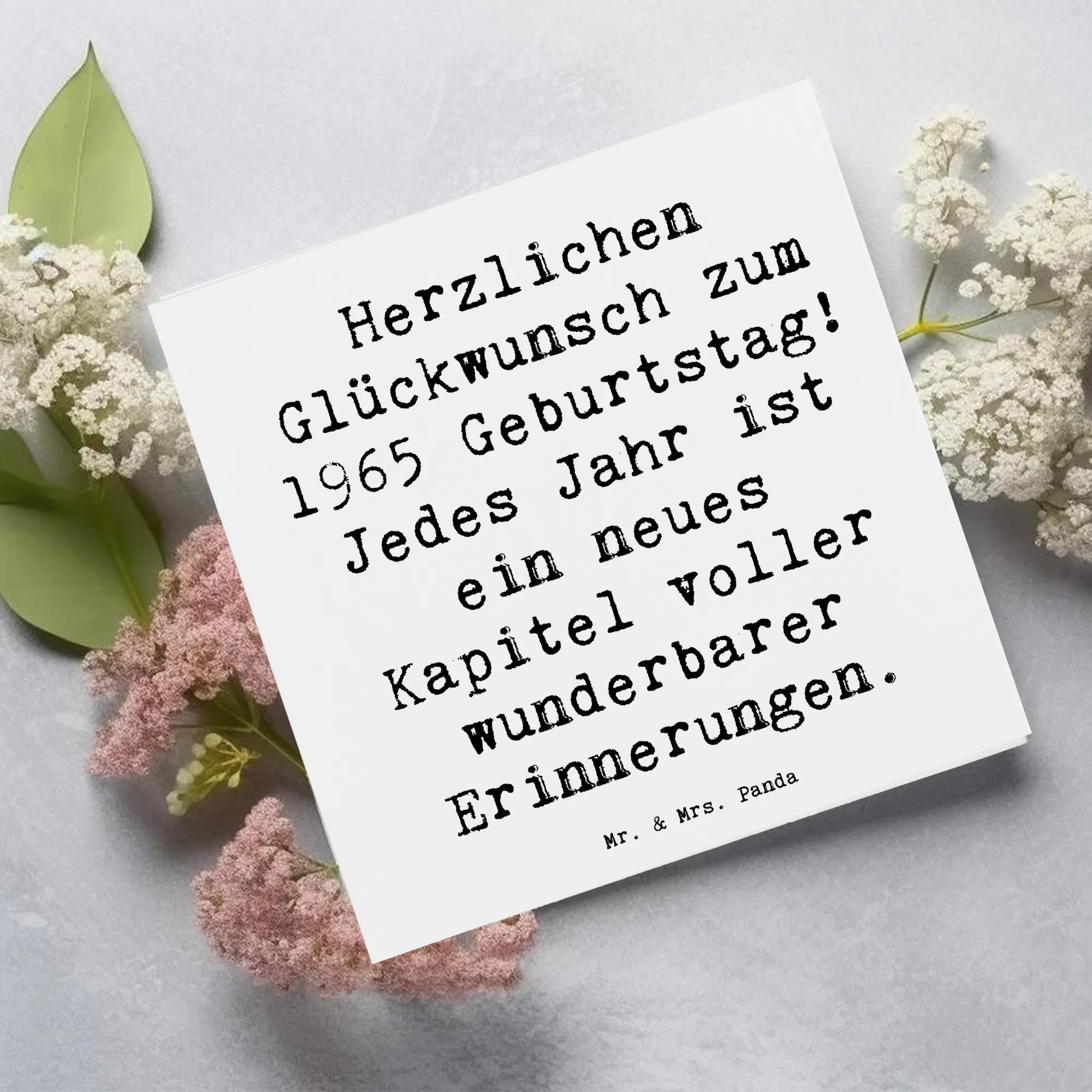 Mit einem liebevollen Spruch auf der Vorderseite – "Herzlichen Glückwunsch zum 1965 Geburtstag! Jedes Jahr ist ein neues Kapitel voller wunderbarer Erinnerungen." – weckt sie sofort Vorfreude und macht jeden Jubilar glücklich.