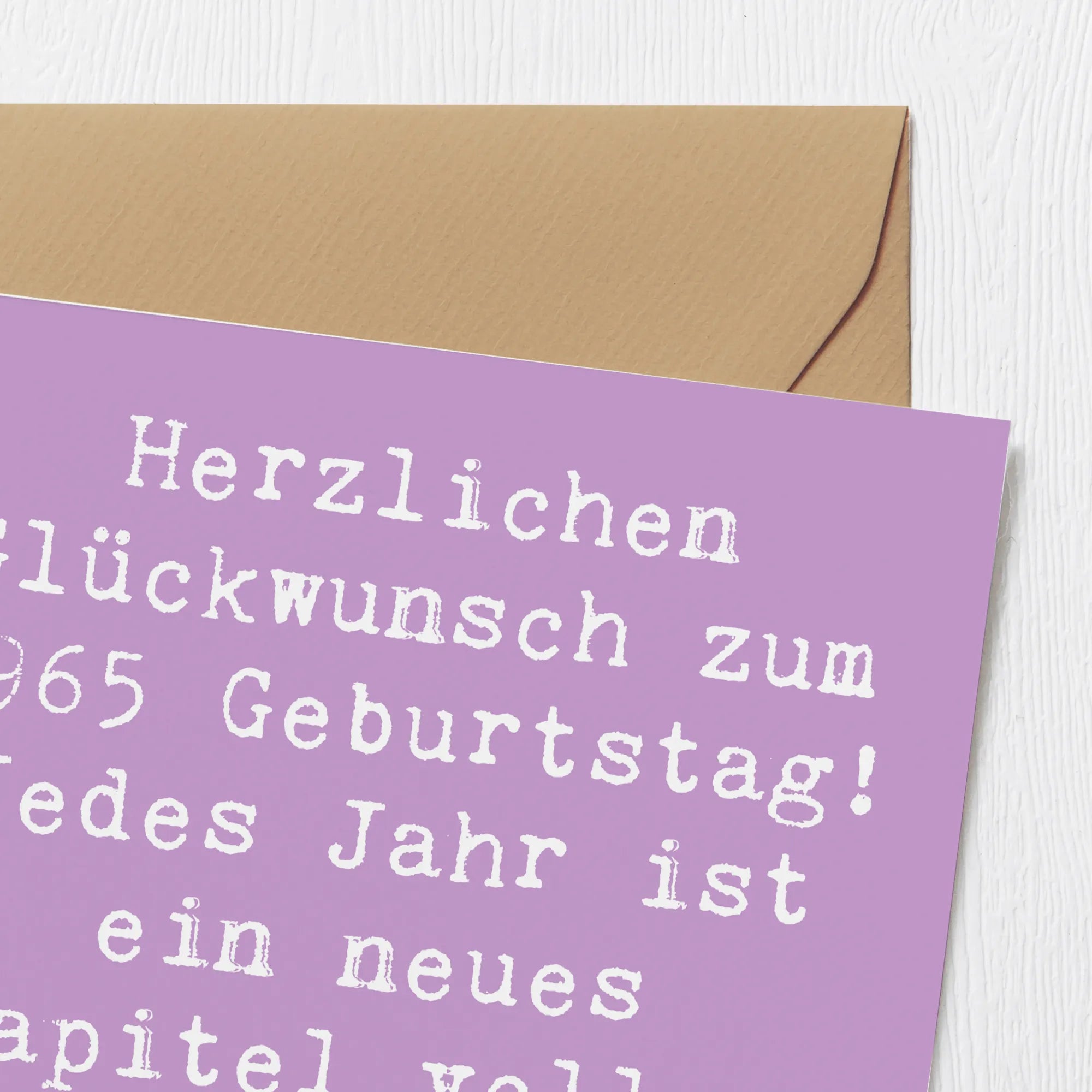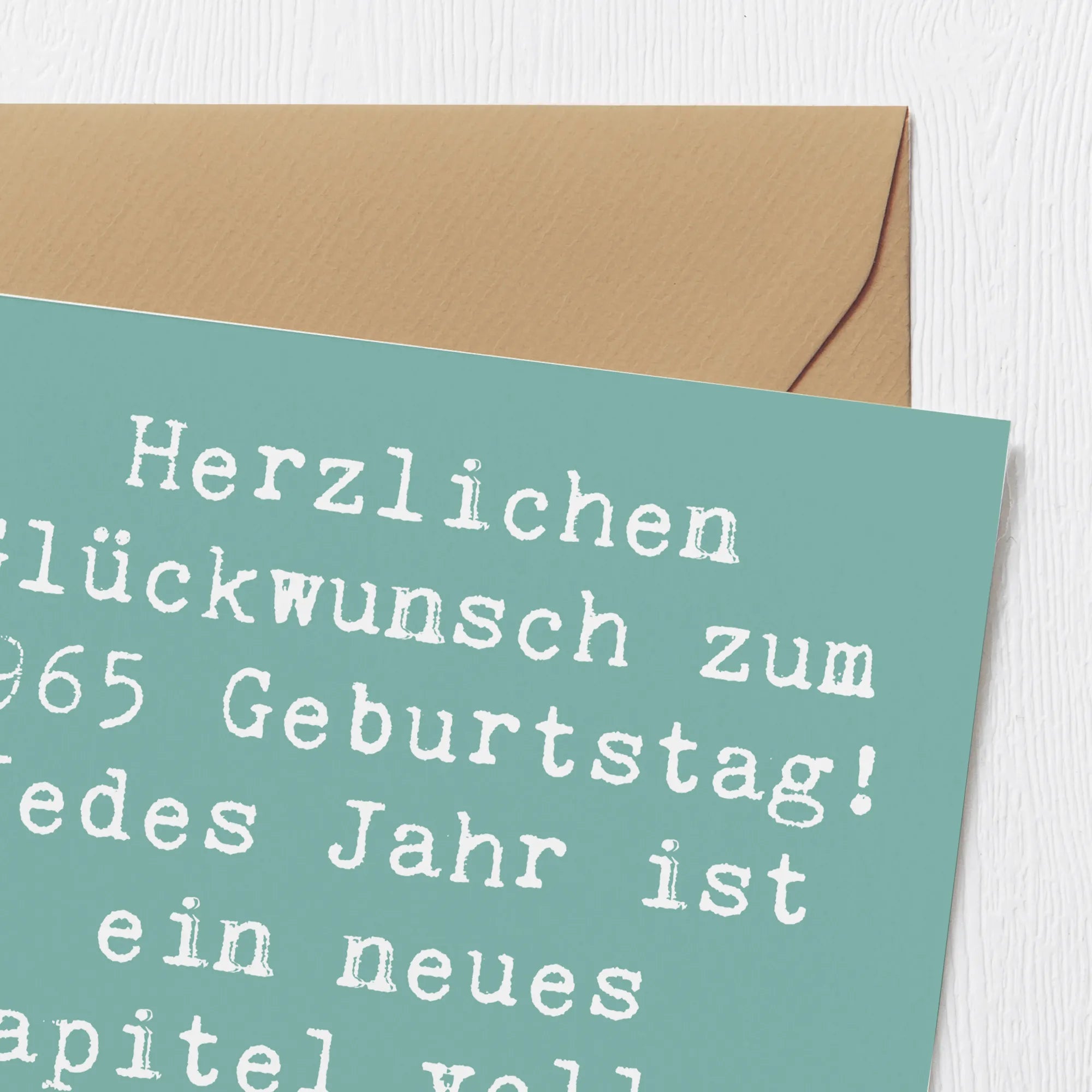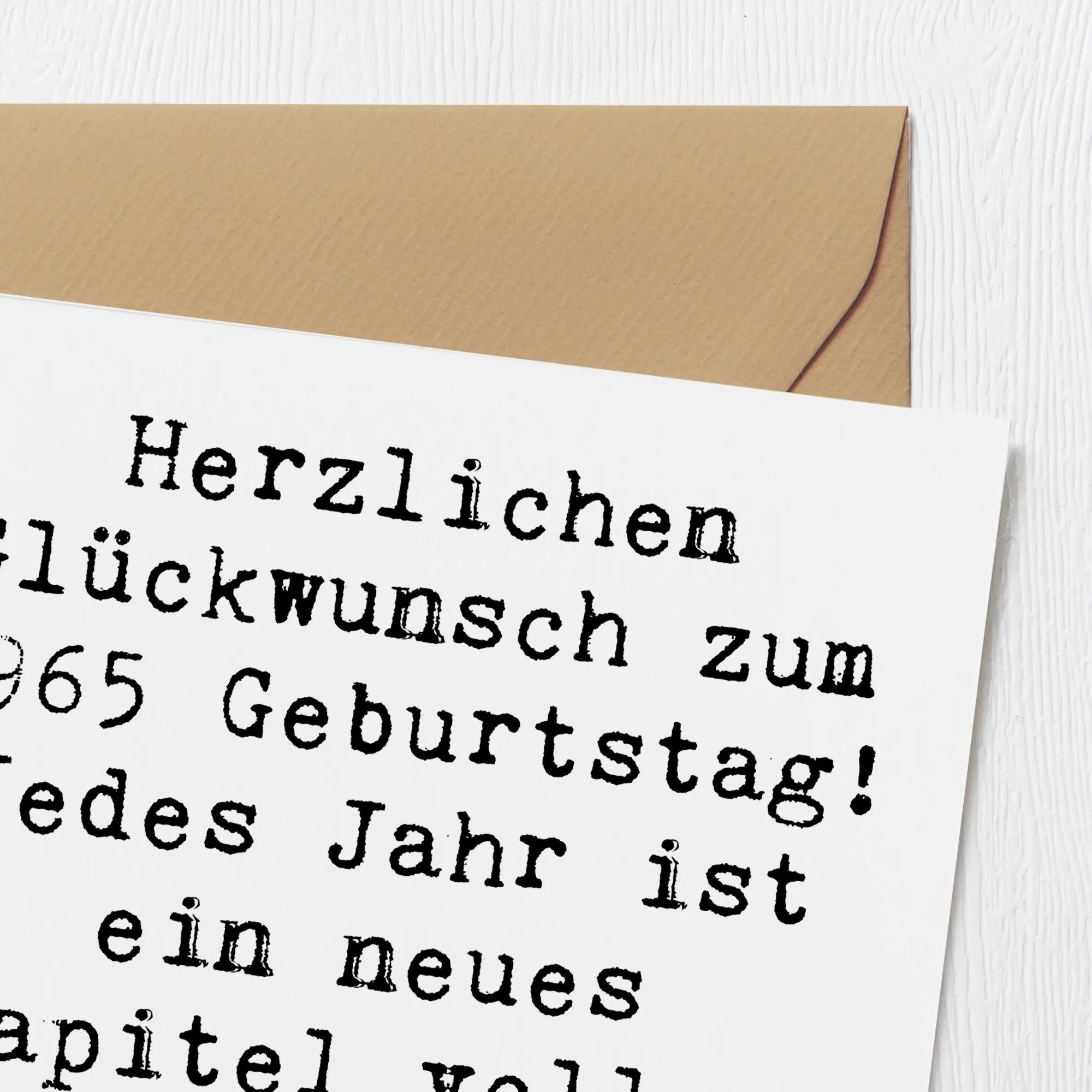 Mit einem liebevollen Spruch auf der Vorderseite – "Herzlichen Glückwunsch zum 1965 Geburtstag! Jedes Jahr ist ein neues Kapitel voller wunderbarer Erinnerungen." – weckt sie sofort Vorfreude und macht jeden Jubilar glücklich.