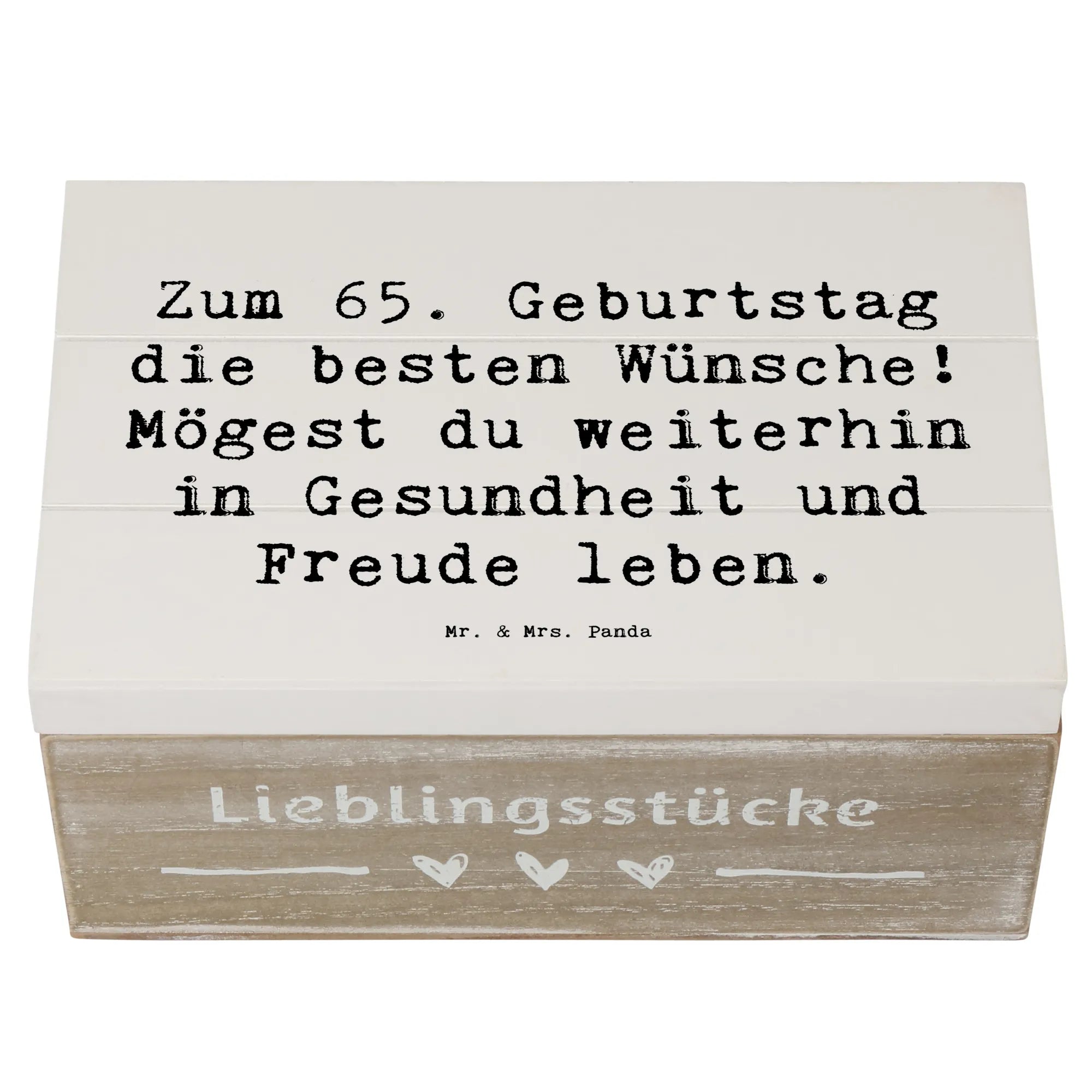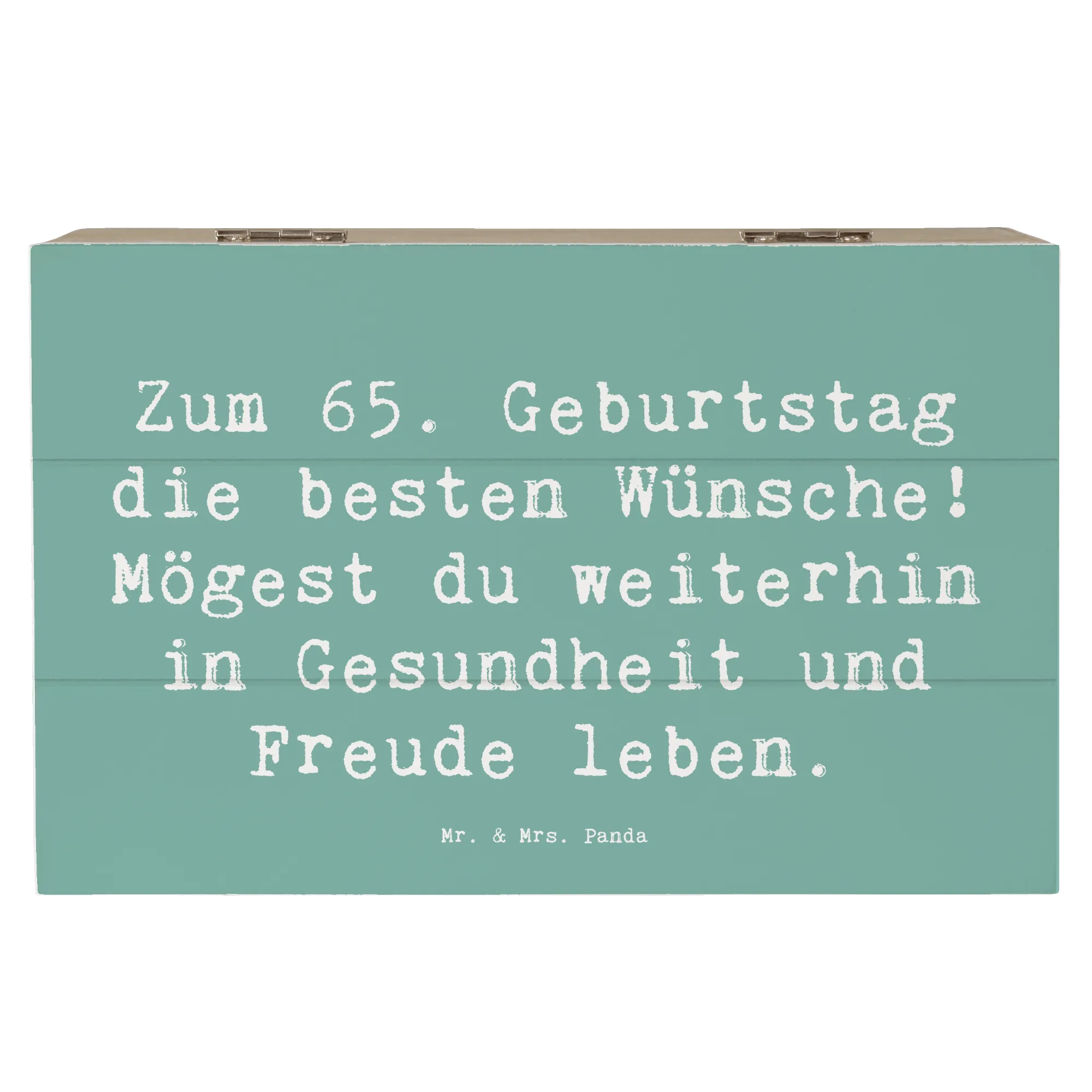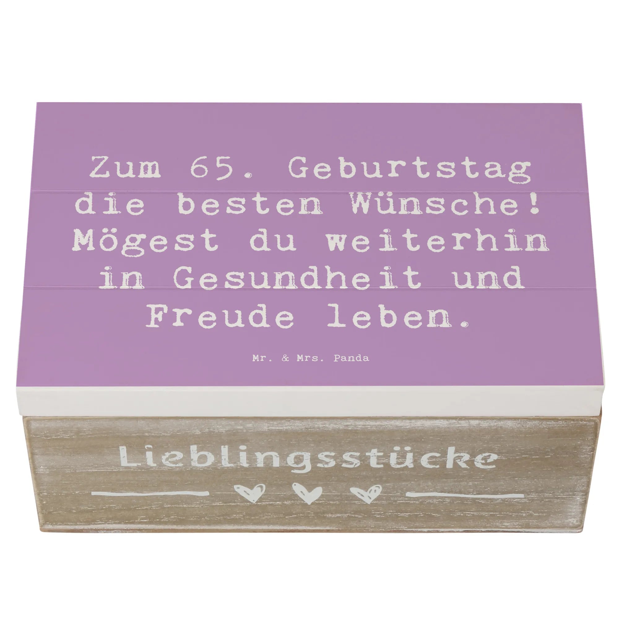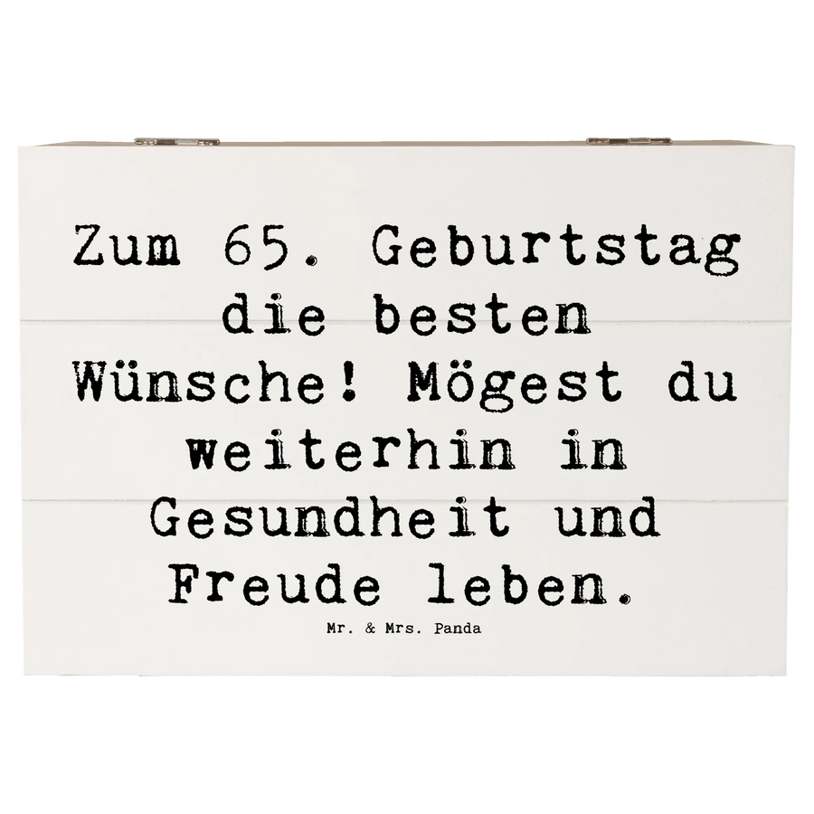 Die wunderschöne Holzkiste zum 65. Geburtstag von Mr. & Mrs. Panda ist das perfekte Geschenk für deinen Liebsten oder deine Liebste. Mit dem liebevoll gestalteten Spruch "Zum 65. Geburtstag die besten Wünsche! Mögest du weiterhin in Gesundheit und Freude leben." bringt diese Kiste nicht nur Freude, sondern auch liebevolle Erinnerungen zum Ausdruck.
