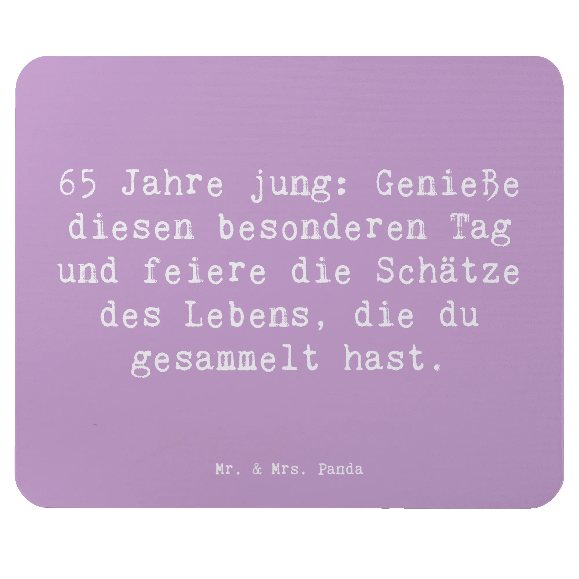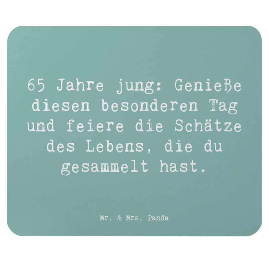 Suchst du nach dem perfekten Geschenk für einen besonderen Menschen, der seinen 65. Geburtstag feiert? Dann ist unser wunderschönes Mauspad mit dem charmanten Spruch "65 Jahre jung: Genieße diesen besonderen Tag und feiere die Schätze des Lebens, die du gesammelt hast" von Mr. & Mrs. Panda genau das Richtige!