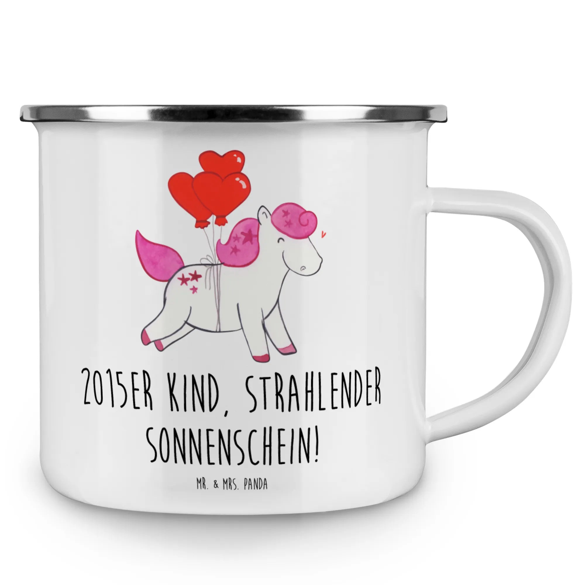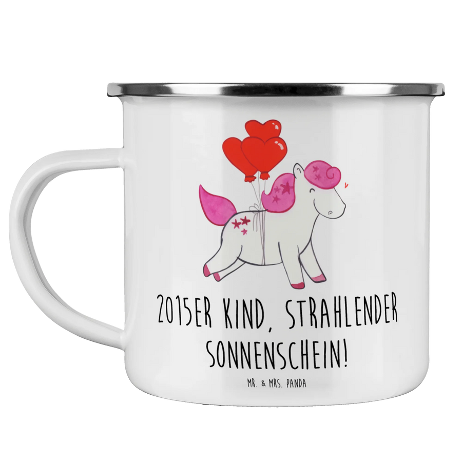 Die perfekte Camping Emaille Tasse von Mr. & Mrs. Panda ist das ideale Geschenk für jeden 2015er Geburtstag! Mit dem fröhlichen Slogan '2015er Kind, strahlender Sonnenschein!' verbreitet diese Tasse sofort gute Laune und kindliche Freude. Sie eignet sich nicht nur für leckere Getränke während des Campingausflugs, sondern wird auch zum wertvollsten Begleiter bei Ausflügen in die Natur oder bei entspannenden Momenten im eigenen Garten.
