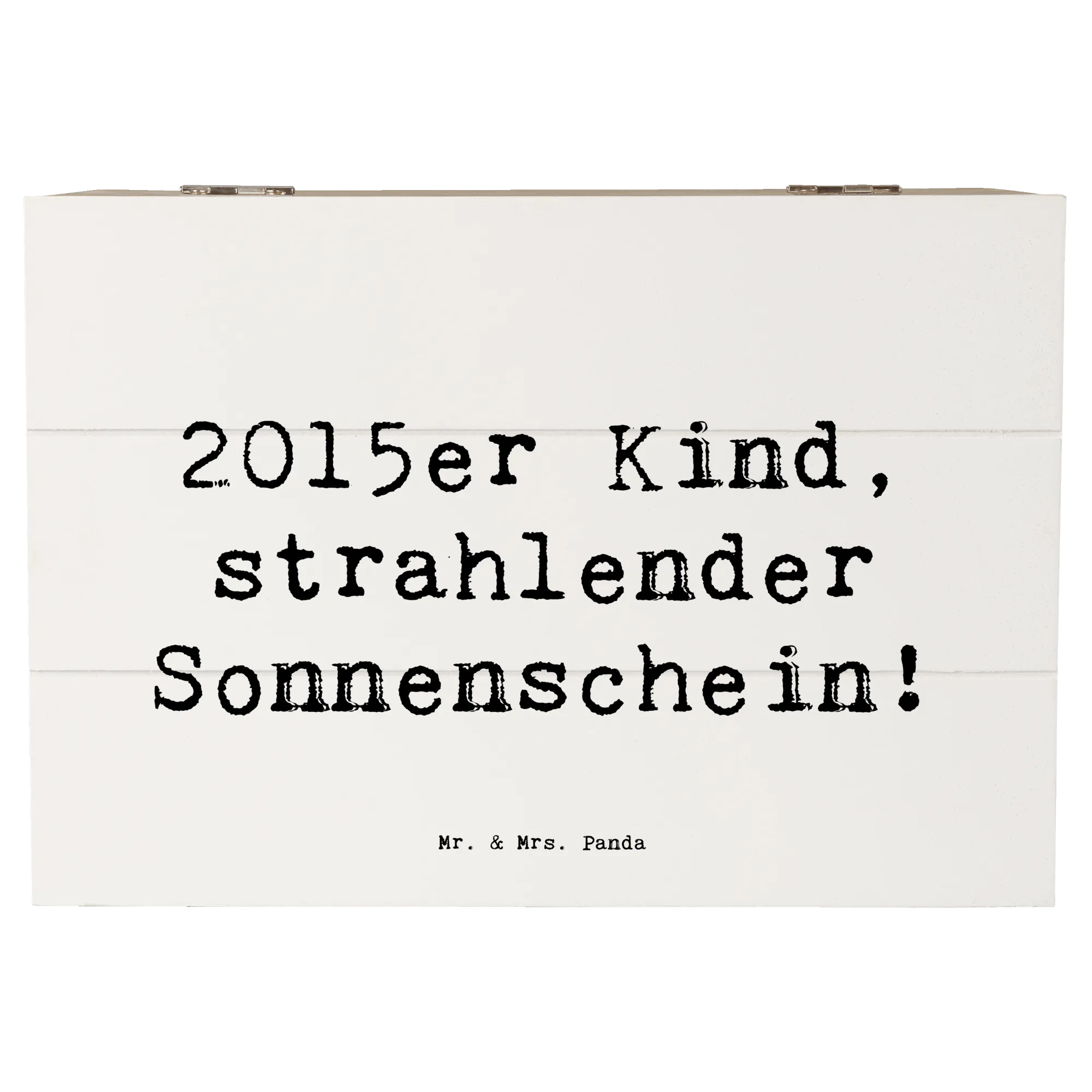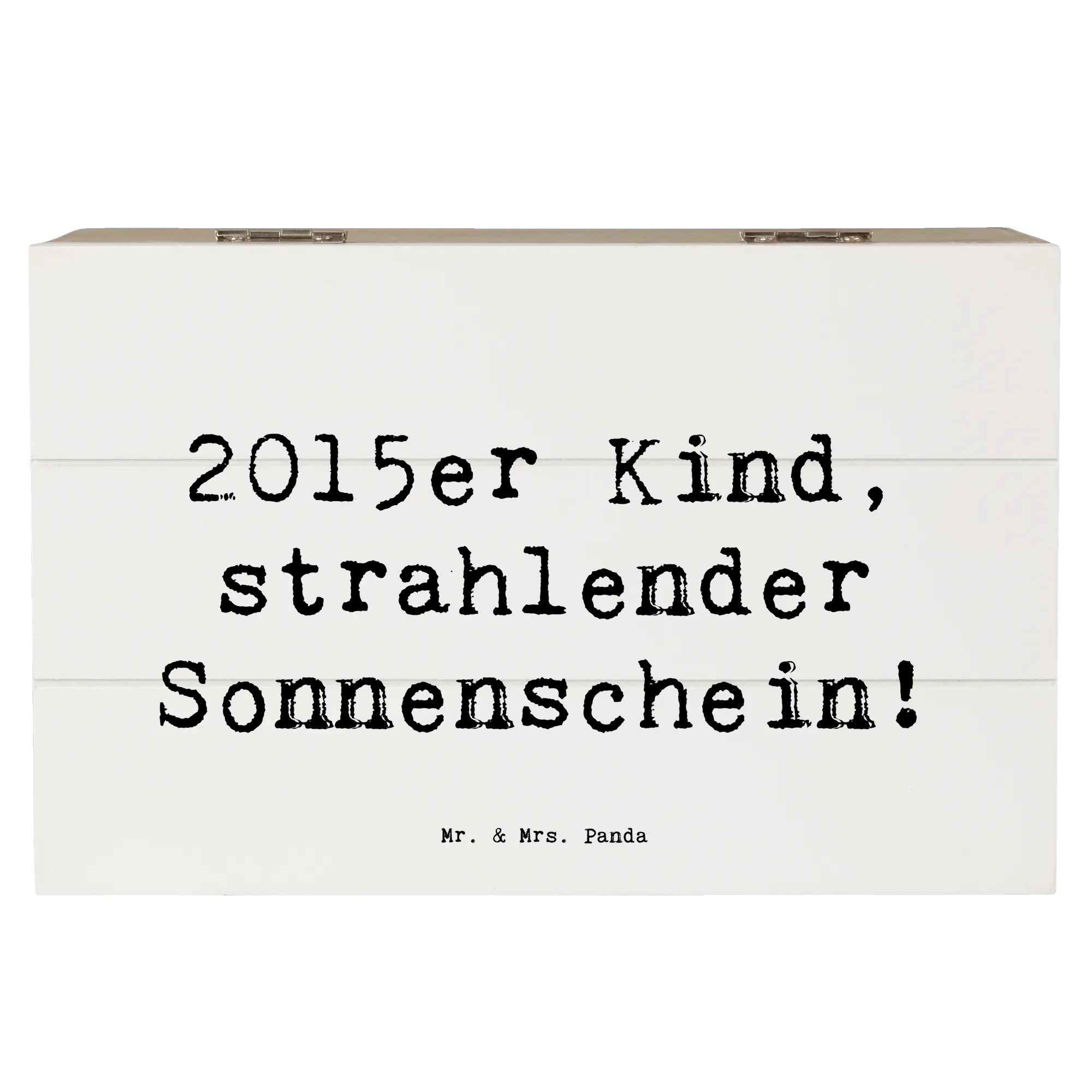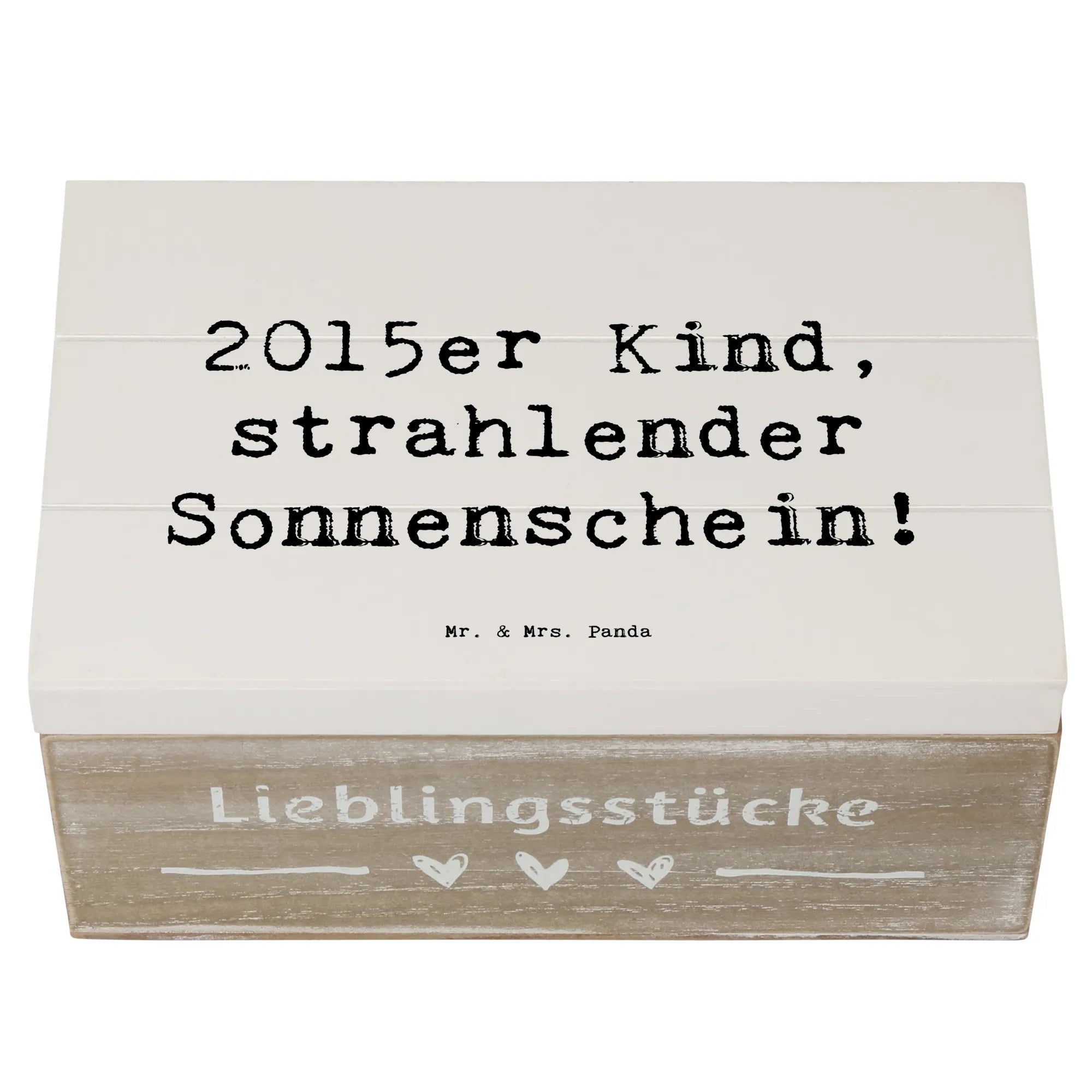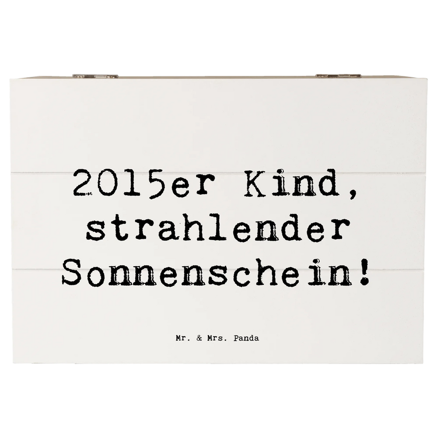 Die wunderschöne Holzkiste von Mr. & Mrs. Panda ist das ideale Geschenk für alle, die 2015 geboren wurden. Diese charmante Kiste mit dem Spruch '2015er Kind, strahlender Sonnenschein!' strahlt Lebensfreude und Liebe aus. Egal, ob zum Geburtstag oder als besondere Erinnerung – diese Holzkiste ist mehr als nur ein Aufbewahrungsort.