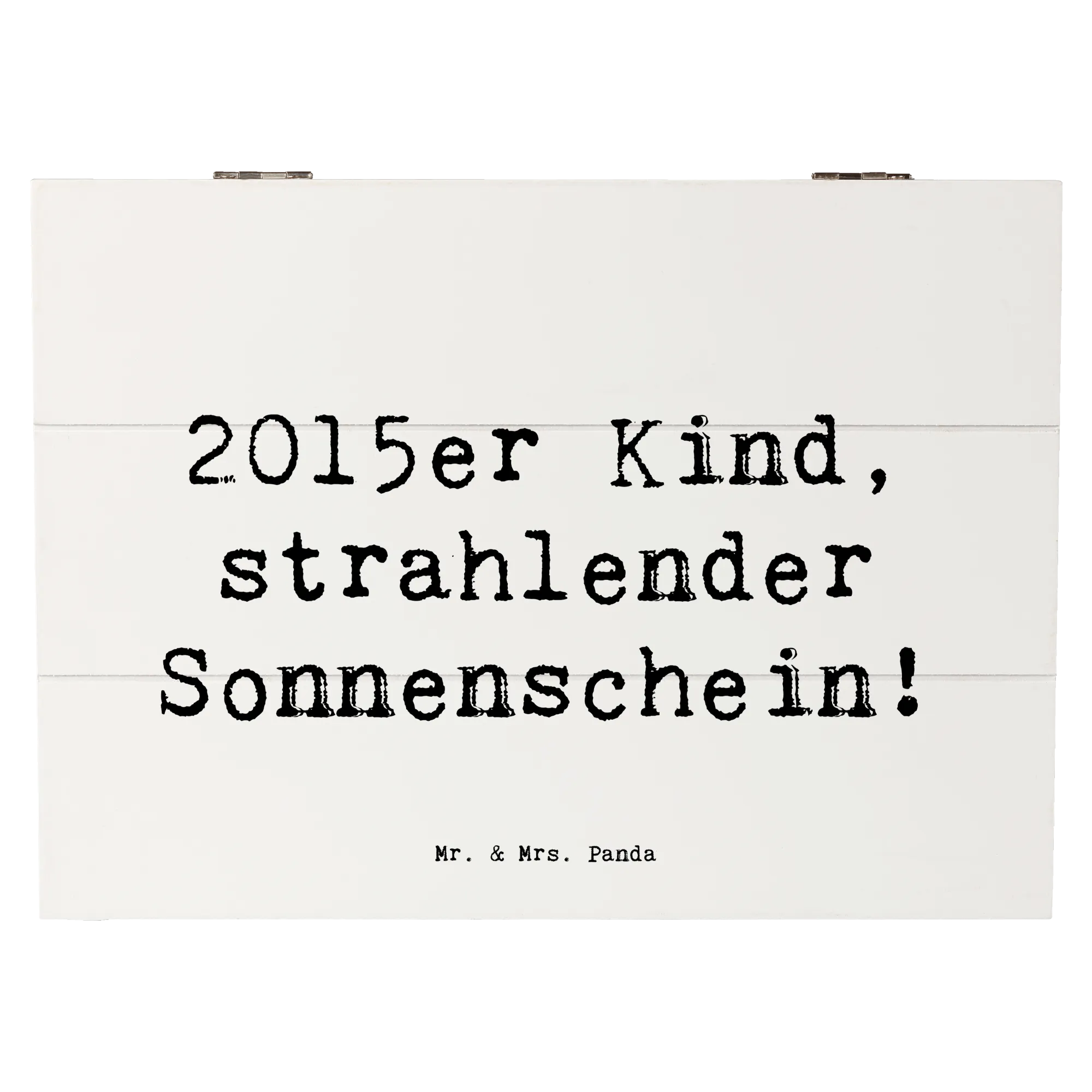Ob zur Geburt, zum ersten Geburtstag oder einfach als süßes Aufbewahrungsmöbel, diese Erinnerungskiste wird nicht nur praktisch sein, sondern auch ein bezaubernder Hingucker im Kinderzimmer. Sie erzählt die Geschichte eines besonderen Jahres und macht jeden Geburtstag unvergesslich. Wenn Du also auf der Suche nach einem einzigartigen Geschenk bist, das Herzen höher schlagen lässt und gleichzeitig Platz für all die besonderen Erinnerungen bietet, dann ist die Holzkiste von Mr. & Mrs. Panda genau das Richtige für Dich! Mit ihrer zauberhaften Botschaft wird sie zu einem wertvollen Begleiter durch die Kindheit und darüber hinaus. Das perfekte Geburtstagsgeschenk für alle kleinen Sonnenstrahlen, die 2015 das Licht der Welt erblickt haben!