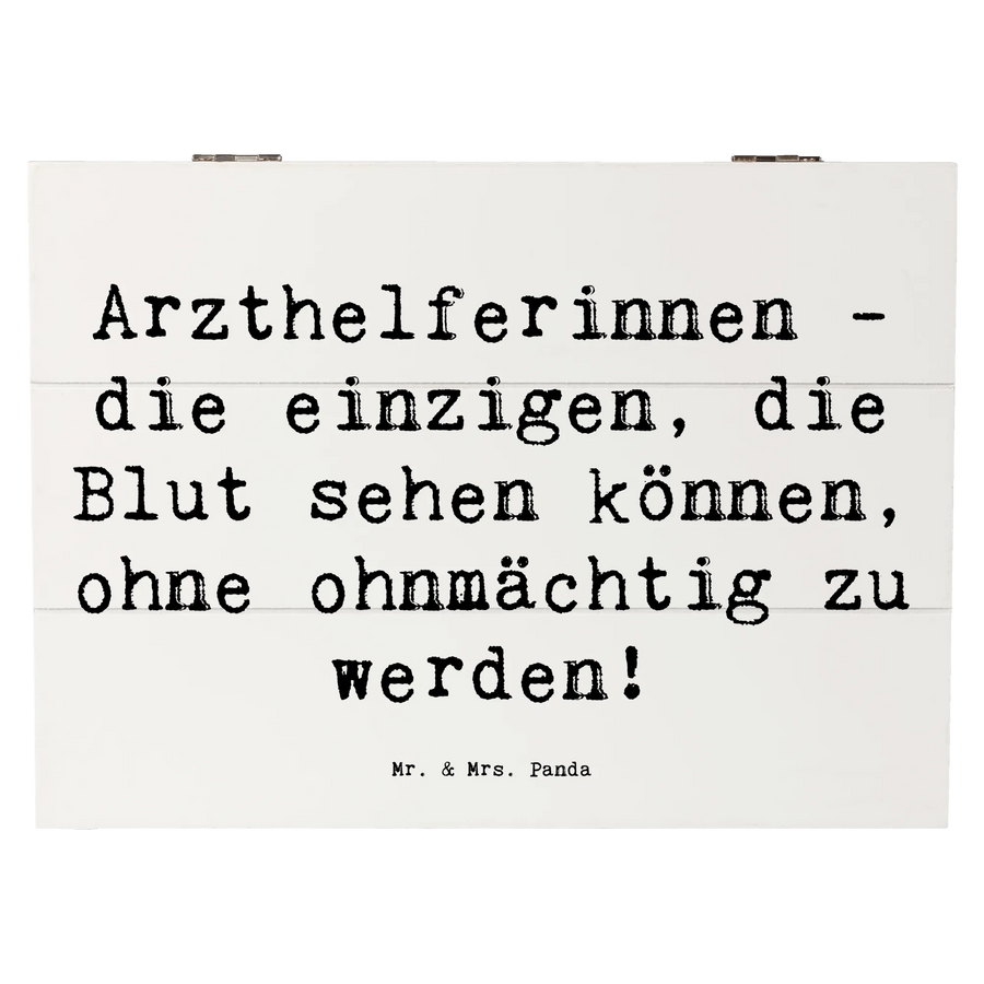 Entdecke die zauberhafte Holzkiste für Arzthelferinnen von Mr. & Mrs. Panda! Diese wunderschöne Kiste wird nicht nur zum praktischen Aufbewahrungsort für deine kleinen Schätze, sondern bringt auch ein Lächeln auf dein Gesicht. Gedruckt aus hochwertiger Premium Hartfaser, ist die Kiste nicht nur stabil, sondern auch ein echter Blickfang. Mit dem lustigen Slogan "Arzthelferinnen - die einzigen, die Blut sehen können, ohne ohnmächtig zu werden!" ist sie das perfekte Geschenk für jede Arzthelferin, die ihren Beruf mit Leidenschaft ausübt.