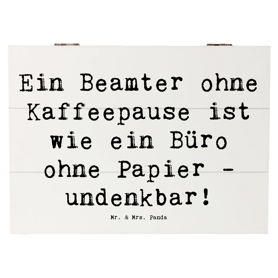 Die Holzkiste Beamter von Mr. & Mrs. Panda ist das perfekte Geschenk für jeden, der im Büro arbeitet oder einfach die kleinen Freuden des Lebens schätzt. Diese wunderschöne Holzkiste ist nicht nur ein dekoratives Element, sondern auch ein wahrer Alleskönner in der Aufbewahrung. Mit ihrem charmanten Spruch: "Ein Beamter ohne Kaffeepause ist wie ein Büro ohne Papier - undenkbar!" bringt sie zum Schmunzeln und verbreitet eine freundliche Atmosphäre bei jedem Anblick.