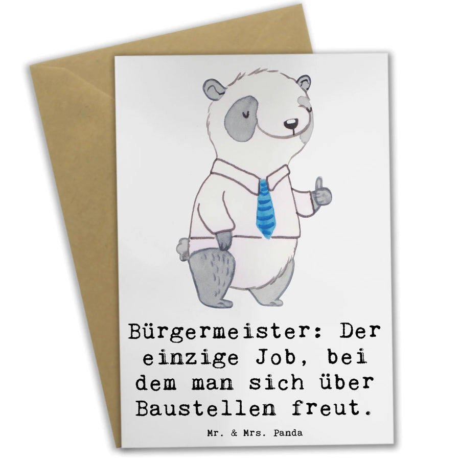 Die Grußkarte "Bürgermeister" aus der Kollektion Berufe von Mr. & Mrs. Panda ist der perfekte Weg, um deine Wertschätzung für all die engagierten Bürgermeister zu zeigen. Diese Karte hat nicht nur einen herzlichen und humorvollen Slogan: "Bürgermeister: Der einzige Job, bei dem man sich über Baustellen freut." sondern ist auch liebevoll gestaltet und bringt ein Lächeln auf die Gesichter der Empfänger.