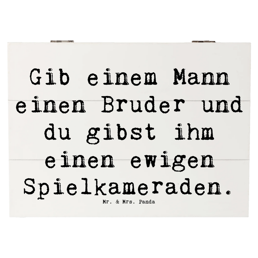 Das besondere an dieser Kiste ist das liebevoll gestaltete Design, das das Thema Bruder aufgreift. Egal, ob Du ein Geschenk für den großen Bruder, den kleinen Bruder oder einfach für einen besonderen Freund suchst – diese Kiste wird Herzen berühren. Mit dem Spruch "Gib einem Mann einen Bruder und du gibst ihm einen ewigen Spielkameraden" drückt sie die ewige Verbindung und die brüderliche Liebe perfekt aus. Deine Geschwisterbeziehung wird durch solch ein persönliches Geschenk noch mehr wertgeschätzt!