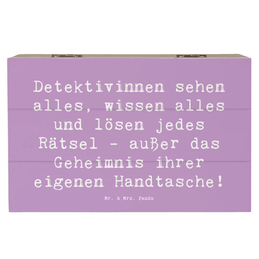 Holzkiste Spruch Detektivinnen sehen alles, wissen alles und lösen jedes Rätsel - außer das Geheimnis ihrer eigenen Handtasche! - 19 x 12 cm - Lavendeltraum