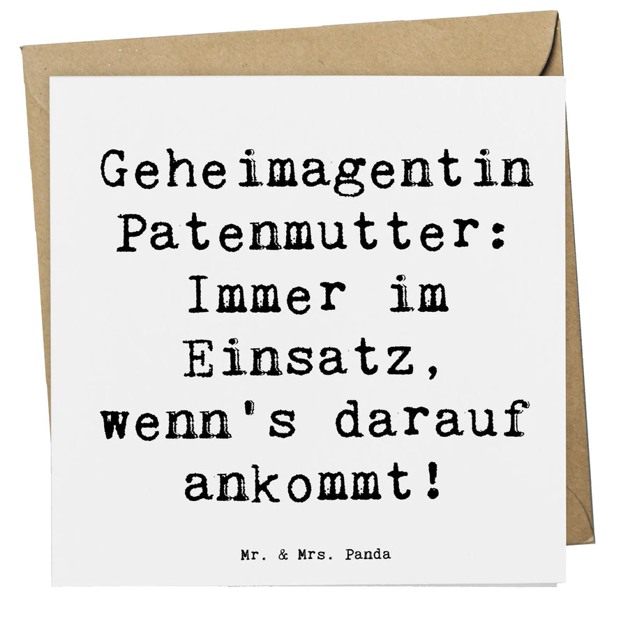 Die Deluxe Karte für Patenmütter von Mr. & Mrs. Panda ist das perfekte Geschenk für alle, die in der besonderen Rolle einer Patenmutter stehen. Mit einem liebevollen Spruch "Geheimagentin Patenmutter: Immer im Einsatz, wenn’s darauf ankommt!" und einem charmanten Design, ist diese Karte ein wunderbares Zeichen der Wertschätzung.