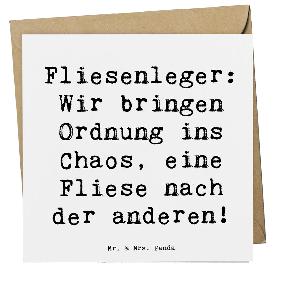 Entdecke die wunderschöne Deluxe Karte Fliesenleger von Mr. & Mrs. Panda! Diese hochwertige quadratische Karte ist besonders für alle, die im Fliesenlegerberuf tätig sind, ein ideales Geschenk. Mit dem motivierenden Spruch "Fliesenleger: Wir bringen Ordnung ins Chaos, eine Fliese nach der anderen!" auf der Vorderseite bringt diese Karte Freude und Wertschätzung für die harte Arbeit der Fliesenleger.