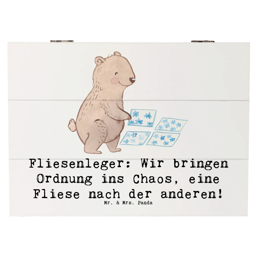 Die wunderschöne Holzkiste von Mr. & Mrs. Panda ist das perfekte Geschenk für all jene, die einen besonderen Platz für ihre Erinnerungen schaffen möchten. Mit dem liebevollen Motiv 'Fliesenleger: Wir bringen Ordnung ins Chaos, eine Fliese nach der anderen!' aus der charmanten Berufe-Kollektion ist diese Kiste nicht nur praktisch, sondern auch ein echter Hingucker.