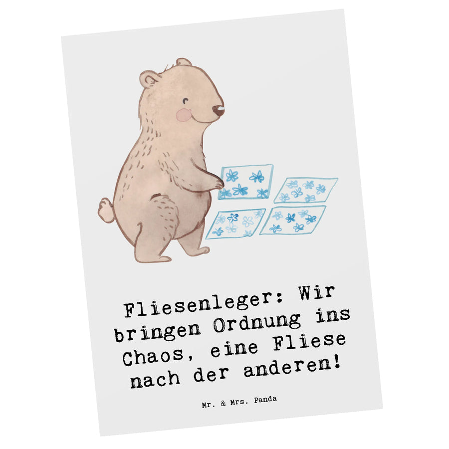 Postkarte Fliesenleger: Wir bringen Ordnung ins Chaos, eine Fliese nach der anderen! - Weiß