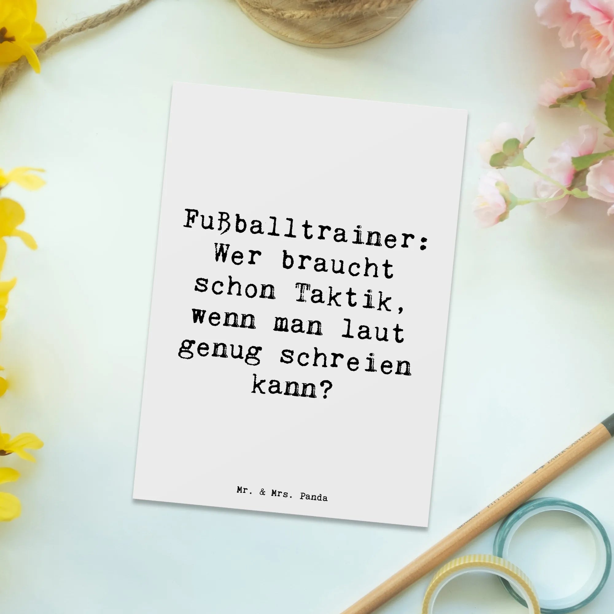 Die einzigartige Postkarte von Mr. & Mrs. Panda mit dem Motiv "Fußballtrainer: Wer braucht schon Taktik, wenn man laut genug schreien kann?" ist das perfekte Geschenk für alle Fußballcoaches und Sportliebhaber. Egal ob zu Weihnachten, zum Geburtstag oder als Dankeschön - diese Karte bringt nicht nur ein Lächeln ins Gesicht, sondern zeigt auch Wertschätzung für das, was Trainer leisten.