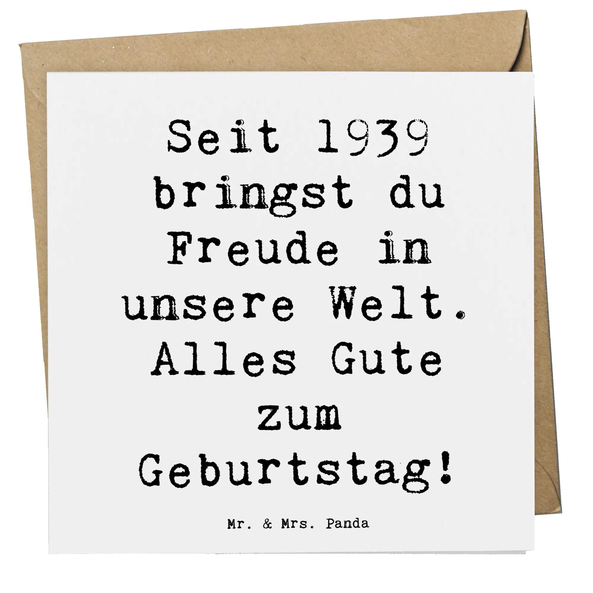 Die Deluxe Karte 1939 Geburtstag von Mr. & Mrs. Panda ist das perfekte Geschenk für alle, die einen besonderen Menschen in ihrem Leben feiern möchten. Diese hochwertige Klappkarte ist nicht nur eine einfache Grußkarte, sondern ein liebevolles Stück, das mit einem einzigartigen Design und einem herzlichen Spruch verziert ist. Der Spruch auf der Karte, "Seit 1939 bringst du Freude in unsere Welt. Alles Gute zum Geburtstag!", vermittelt genau das Gefühl, das du deinen Liebsten gerne übermitteln möchtest.