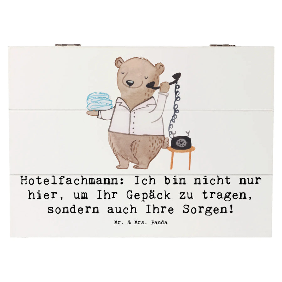 Entdecke die zauberhafte Holzkiste von Mr. & Mrs. Panda mit dem Motiv "Hotelfachmann"! Diese ausgesprochen charmante Kiste ist nicht nur ein Blickfang, sondern auch der ideale Aufbewahrungsort für all Deine wertvollen Schätze.