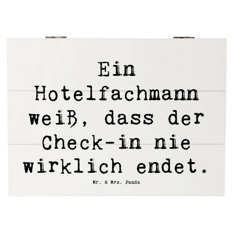 Die Holzkiste "Hotelfachmann" von Mr. & Mrs. Panda ist das perfekte Geschenk für alle, die in der faszinierenden Welt des Hotelmanagements tätig sind. Diese wunderschöne Kiste ist mit dem Spruch "Ein Hotelfachmann weiß, dass der Check-in nie wirklich endet." versehen, der jedem Geschenk eine persönliche Note verleiht.